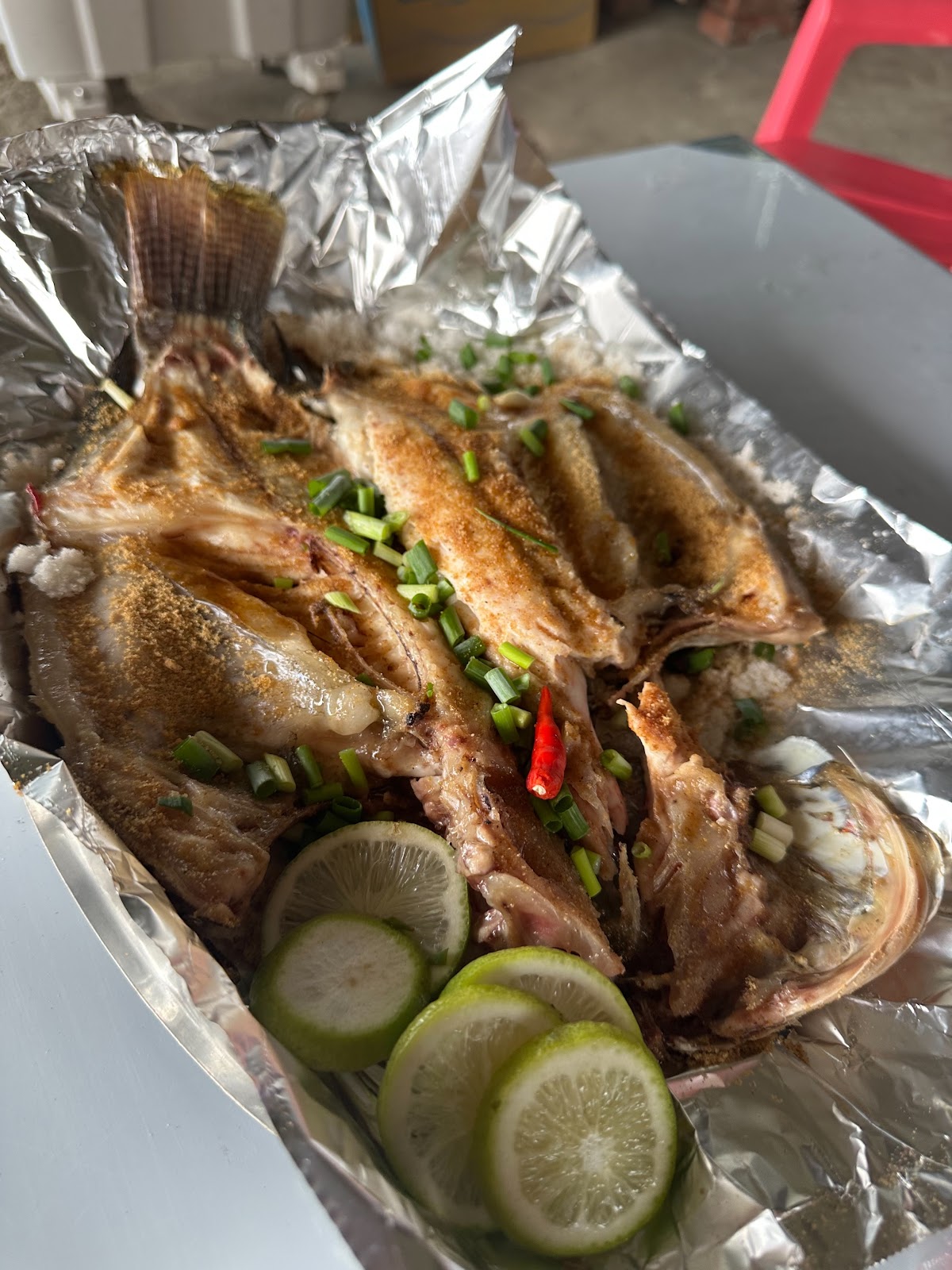後來因為只是路過,沒辦法把釣到的魚帶回家,老闆也很熱情的幫我們料理,超級好吃