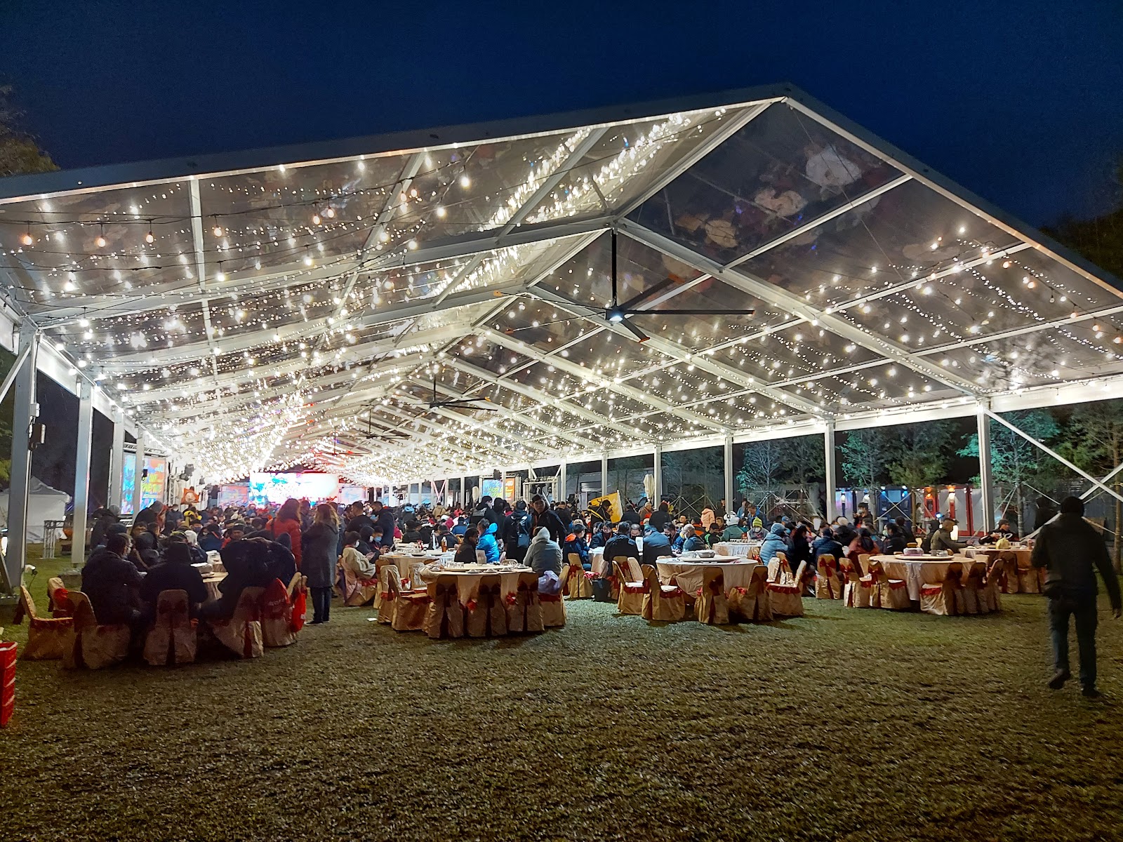 公司在這邊聚餐,當天晚上變冷還在半戶外吃晚餐,有美美的屋頂但是旁邊就只有塑膠布蓋著,塑膠布下面留約30-20公分通風,真的非常冷!邊吃邊吹冷風都擔心會不會感冒⋯