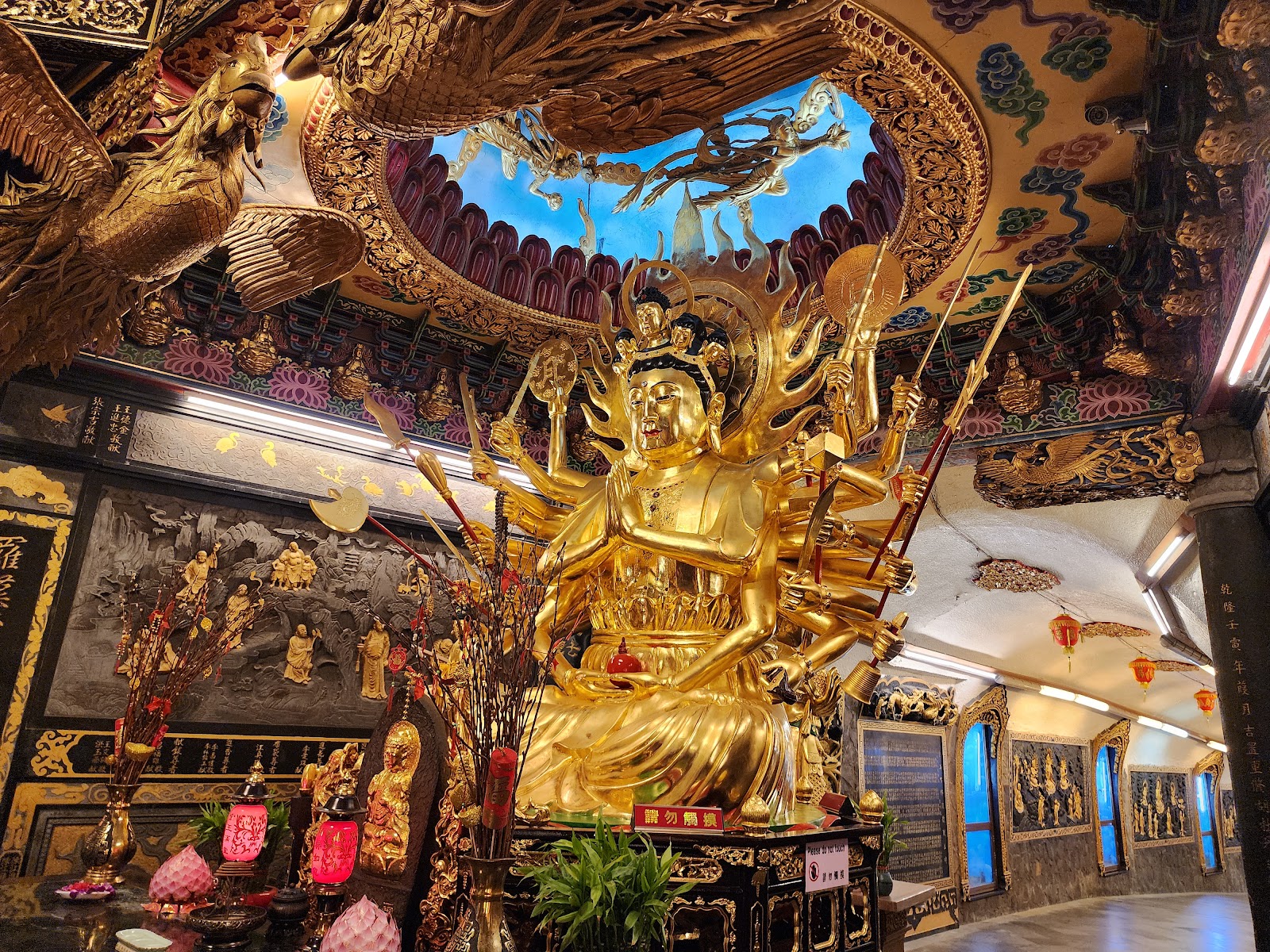 2. 廟內有四柱香主要對應四個爐,但媽祖前的桌下還有虎爺可以祭拜,外面則有地藏王菩薩,而古佛洞深處則供奉著千手觀音。