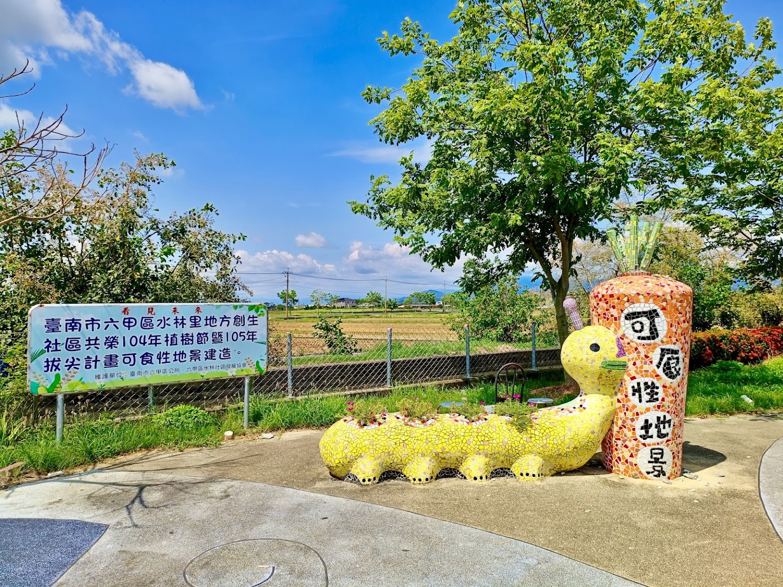 首頁 南台灣 台南市景點推薦 可食性地景 可食性地景 看更多照片 共10張 景點位置 附近住宿 週邊活動 週邊景點 評價 景點位置 地址:台南市水林里民族街240巷59弄 附近住宿 文化信然-商旅 文化信然-商旅 貳侶休閒藝術旅館 巨地花園渡假莊園 星象商旅 更多台南市住宿推薦 週邊活動 台南住宿|不管是獨旅或是想省錢,這幾間台南青年旅館都是你的最佳選擇! 詳細介紹 台南住宿|白天看古堡、吃美食,晚上就要在客房好好享受!夜店風格、室內划水道任你挑選 詳細介紹 南部住宿|想念夏天的陽光、沙灘、比基尼!精選8間台灣南部絕美渡假飯店 詳細介紹 週邊景點 隆田文化資產教育園區 評價: 人數:5201人 葫蘆埤自然公園 評價: 人數:4310人 吼爆魔音會館 評價: 人數:1人 麻豆代天府 天堂 評價: 人數:85人 柚兒園 評價: 人數:207人 更多台南市景點推薦 評價 3.7 王妃 3/5 2025/06/24 路邊一個可愛的裝置,由社區認養的小步道,有2個停車格,拍個照,不會多做停留的點。 wayne chang 5/5 2024/12/06 可愛! 包小城 5/5 2024/09/12 上個月去六甲吃吃喝喝 順道去看看。 蠻可愛的裝置藝術❤️ 卡比巴拉 1/5 2024/07/17 好醜的造景 Peggy Chen 5/5 2024/04/07 好可愛的地點哦 kaiting HAN 5/5 2024/01/02 滿可愛的裝置藝術,就停下來拍照📷 滿不錯的 黃淦 3/5 2023/12/24 荒地利用,互蒙其利. 除了散步運動外,沒啥景觀. Wen Ching Cheng 4/5 2023/10/15 位於巷內,只能路邊暫停,沒有停車位。 附近沒有東西可以逛,只能拍照一下。 六甲景點,2016年時六甲區獲得環保署「拔尖計畫」補助,在水林社區營造的可食地景步道,美化社區環境打造社區特色。也是條長達950公尺的步道,有可愛的毛毛蟲、胡蘿蔔、西瓜、茄子等農村意象造型的藝術地景。 稱為「可食」地景步道,則是因步道也劃分部分區塊讓里民認養種植可食用的蔬菜。 資料來源由Google提供