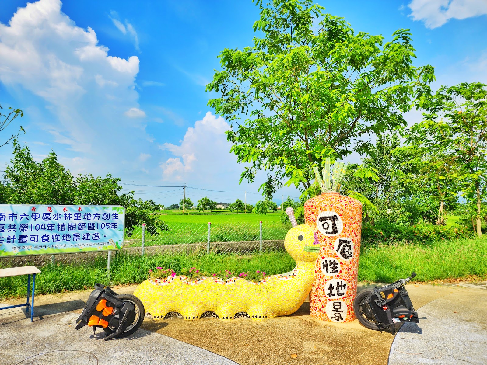 首頁 南台灣 台南市景點推薦 可食性地景 可食性地景 看更多照片 共10張 景點位置 附近住宿 週邊活動 週邊景點 評價 景點位置 地址:台南市水林里民族街240巷59弄 附近住宿 凱渥台南館 巨地花園渡假莊園 歐薇汽車旅館 郡象商旅 歐薇汽車旅館 更多台南市住宿推薦 週邊活動 台南住宿|不管是獨旅或是想省錢,這幾間台南青年旅館都是你的最佳選擇! 詳細介紹 台南住宿|白天看古堡、吃美食,晚上就要在客房好好享受!夜店風格、室內划水道任你挑選 詳細介紹 南部住宿|想念夏天的陽光、沙灘、比基尼!精選8間台灣南部絕美渡假飯店 詳細介紹 週邊景點 溢洪道 評價: 人數:4人 國泰文旦園 評價:尚無評價 李正德麻豆文旦 評價:尚無評價 (善化夜市)射氣球.BB槍.投籃球 評價:尚無評價 秘雕 評價: 人數:2人 更多台南市景點推薦 評價 3.8 經經 5/5 2025/10/20 剛好到附近辦事情拜訪朋友,看到Google Map上面有一個奇怪的地標,叫做可食性地景,實在太好奇了所以騎車前往,路上還下雨,在鄉間小路上穿梭,好不容易抵達了可食性地景,看完還是不知道到底這個是什麼... 應該已經有些年代,上面的水泥塊都已經吸水粉末化,輕輕觸碰就會剝落,裡面的鋼筋也都生鏽了,不過單純以造型來說在田間小路上看到一個奇特的毛毛蟲蘿蔔也是蠻有趣的啦🤣 王妃 3/5 2025/06/24 路邊一個可愛的裝置,由社區認養的小步道,有2個停車格,拍個照,不會多做停留的點。 wayne chang 5/5 2024/12/06 可愛! 包小城 5/5 2024/09/12 上個月去六甲吃吃喝喝 順道去看看。 蠻可愛的裝置藝術❤️ 卡比巴拉 1/5 2024/07/17 好醜的造景 Peggy Chen 5/5 2024/04/07 好可愛的地點哦 kaiting HAN 5/5 2024/01/02 滿可愛的裝置藝術,就停下來拍照📷 滿不錯的 黃淦 3/5 2023/12/24 荒地利用,互蒙其利. 除了散步運動外,沒啥景觀. Wen Ching Cheng 4/5 2023/10/15 位於巷內,只能路邊暫停,沒有停車位。 附近沒有東西可以逛,只能拍照一下。 六甲景點,2016年時六甲區獲得環保署「拔尖計畫」補助,在水林社區營造的可食地景步道,美化社區環境打造社區特色。也是條長達950公尺的步道,有可愛的毛毛蟲、胡蘿蔔、西瓜、茄子等農村意象造型的藝術地景。 稱為「可食」地景步道,則是因步道也劃分部分區塊讓里民認養種植可食用的蔬菜。 資料來源由Google提供