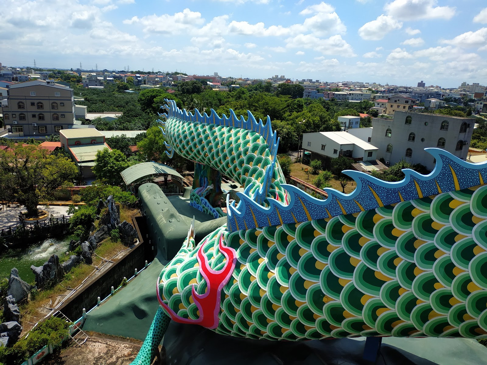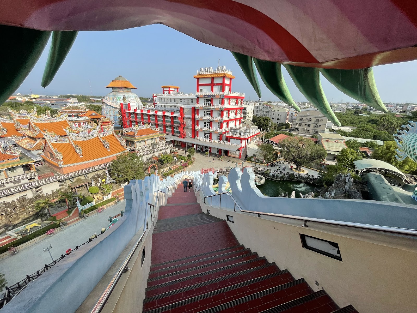 出來會從龍口下樓梯。上面高高的有風涼爽,但從龍口走下來樓梯比較長,要小心不要滑倒。如果在每格樓梯可以加防滑條會安全些。畢竟滿多小朋友來玩的。