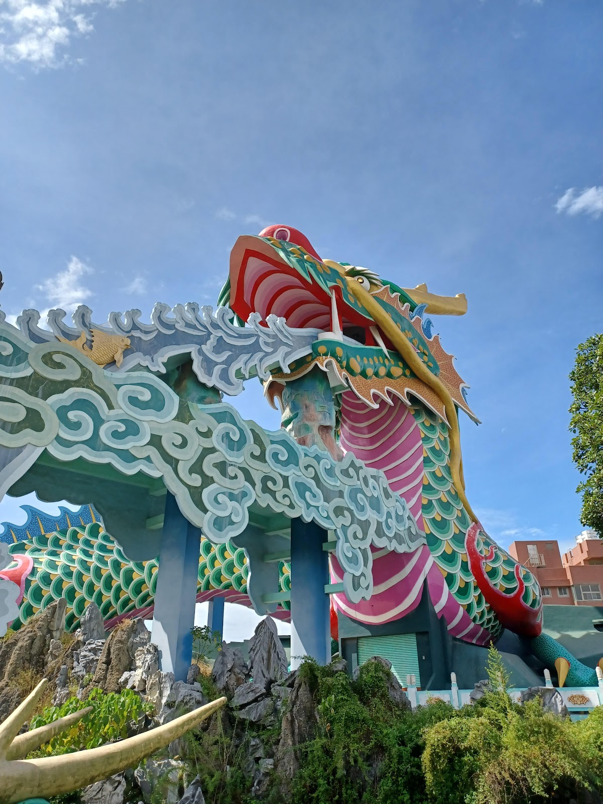 一開始是在外面吃飯,看到有一條好大的龍,不知道是什麼樣的廟宇而好奇過來看看。想不到裡面還有天堂和地獄的造景可以看,很有趣。