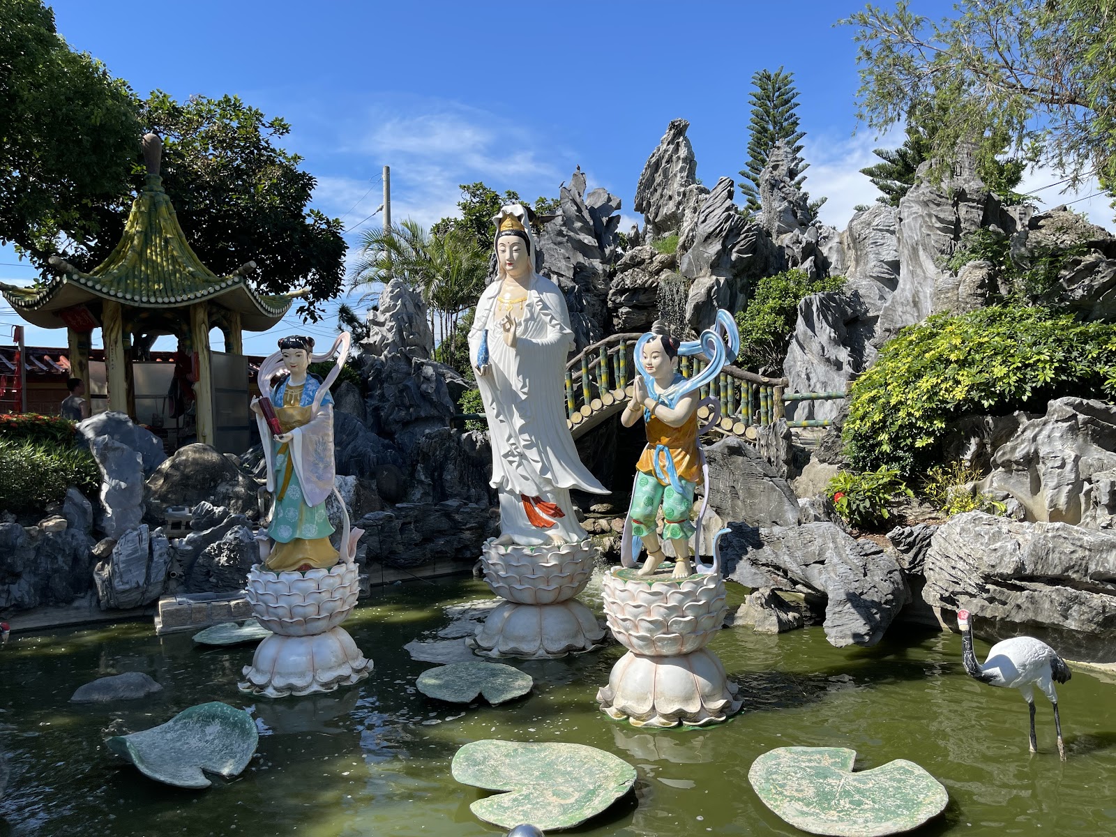 20260103今天第一次到佳福寺參拜,從主殿往外看有種豁然開朗的心境,主殿的觀音媽給人溫柔祥和感,沒有多餘的元素,能靜靜與主神訴說心願交流,廟埕廣闊有子母樹與奇石襯托,別有一番風味;廟旁有魚池,池內有魚及烏龜可欣賞,加上滾輪溜滑梯,完全是小朋友的天堂,超棒的親子景點,好停車,推薦想走廟又想溜小孩的家庭們。