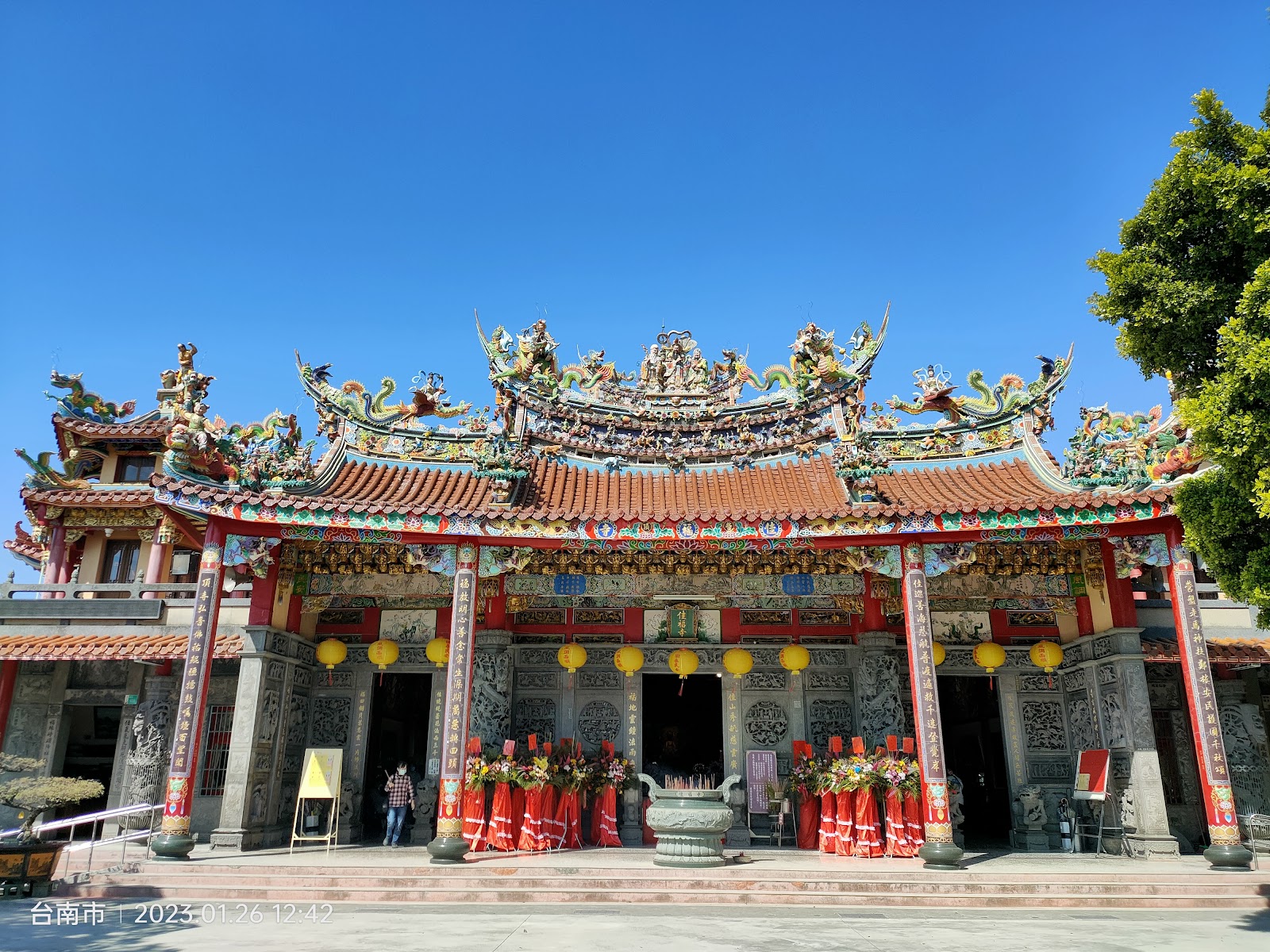 寺廟歷經多次重建,現貌為1982年竣工,以巍峨唐式建築、精緻石木雕刻聞名,園區設有「南海淨園」水上造景及全臺最長滾輪滑梯,兼具信仰與親子休閒功能,獲選南瀛百景。