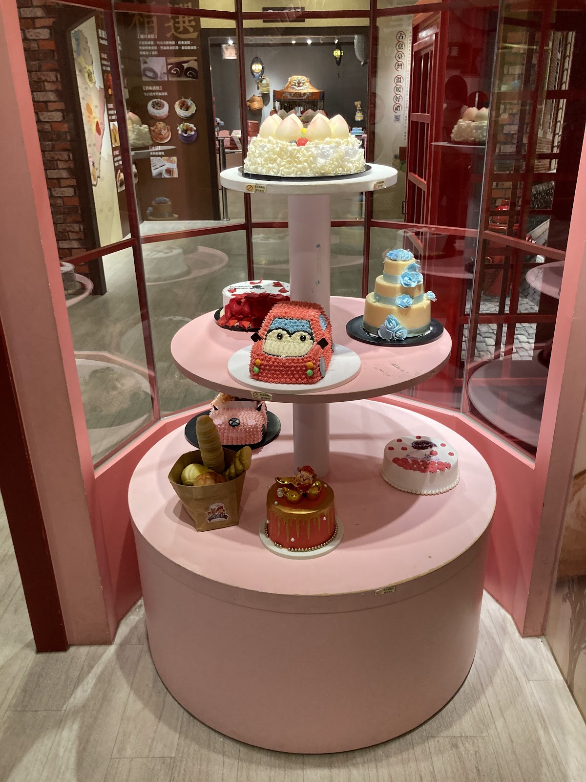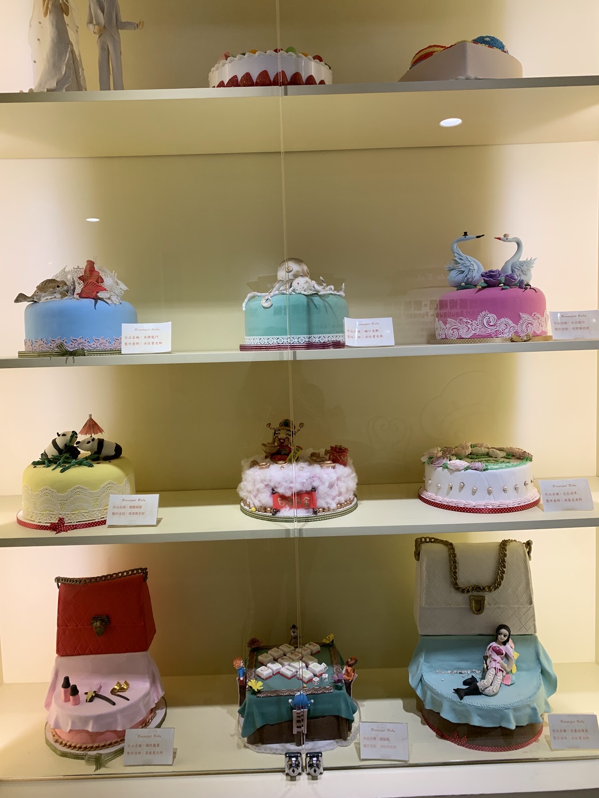 裡面有許多用保麗龍及黏土製作的蛋糕模型