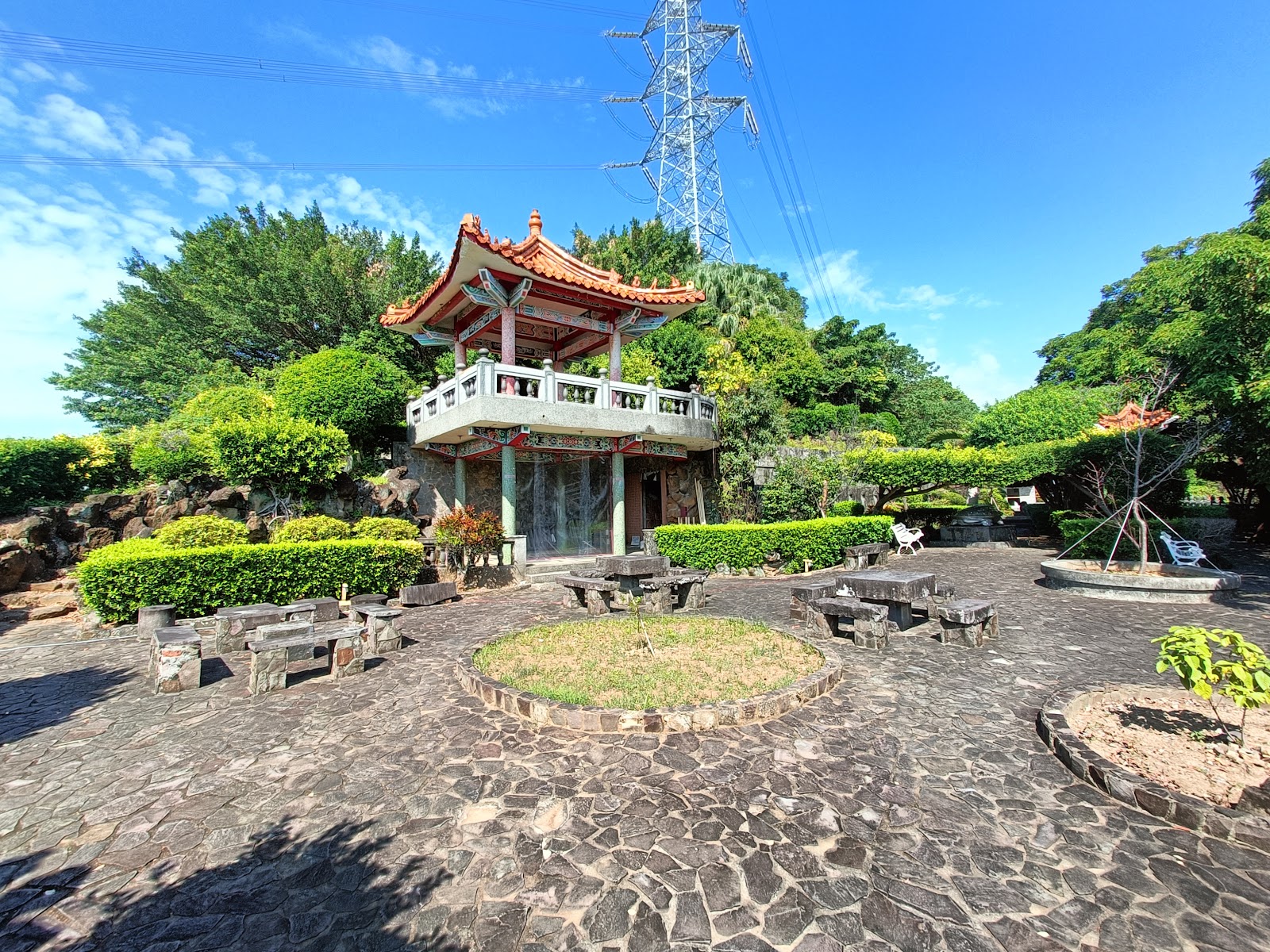 開放時間為早上七點至下午五點,沿著關渡宮右邊階梯即可到達。樹木剪裁有型,花卉綻放,草坪整齊,還有人造假山、涼亭。上來視野良好,可遠眺社子島丶觀音山丶關渡自然公園丶關渡橋,以及滾滾流動的淡水河。