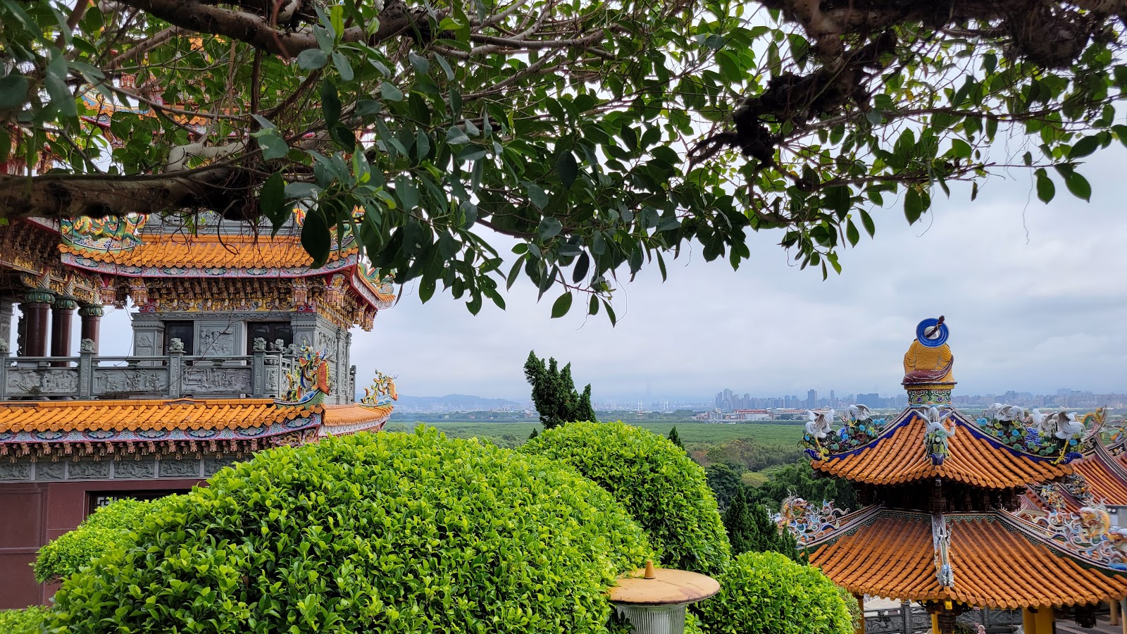 來關渡宮不要錯過往上走到最高處的靈山公園,在這裡可以比古佛洞看到更寬廣的風景,還有櫻花可以賞,來這散散步看風景非常舒服