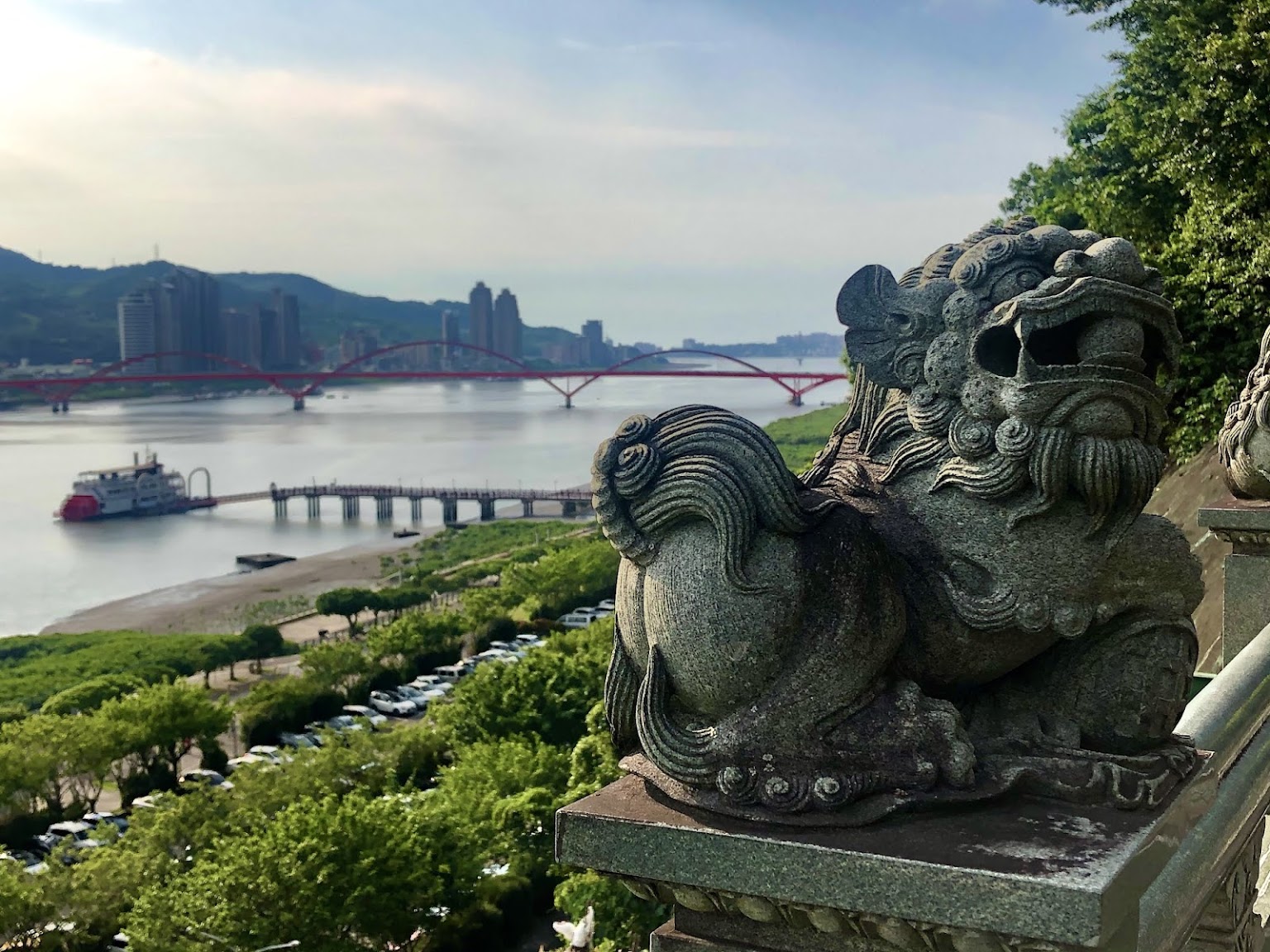 關渡宮參拜後,一起可以走走的公園(階梯多),可以遠眺淡水河上紅色顯眼關渡橋。