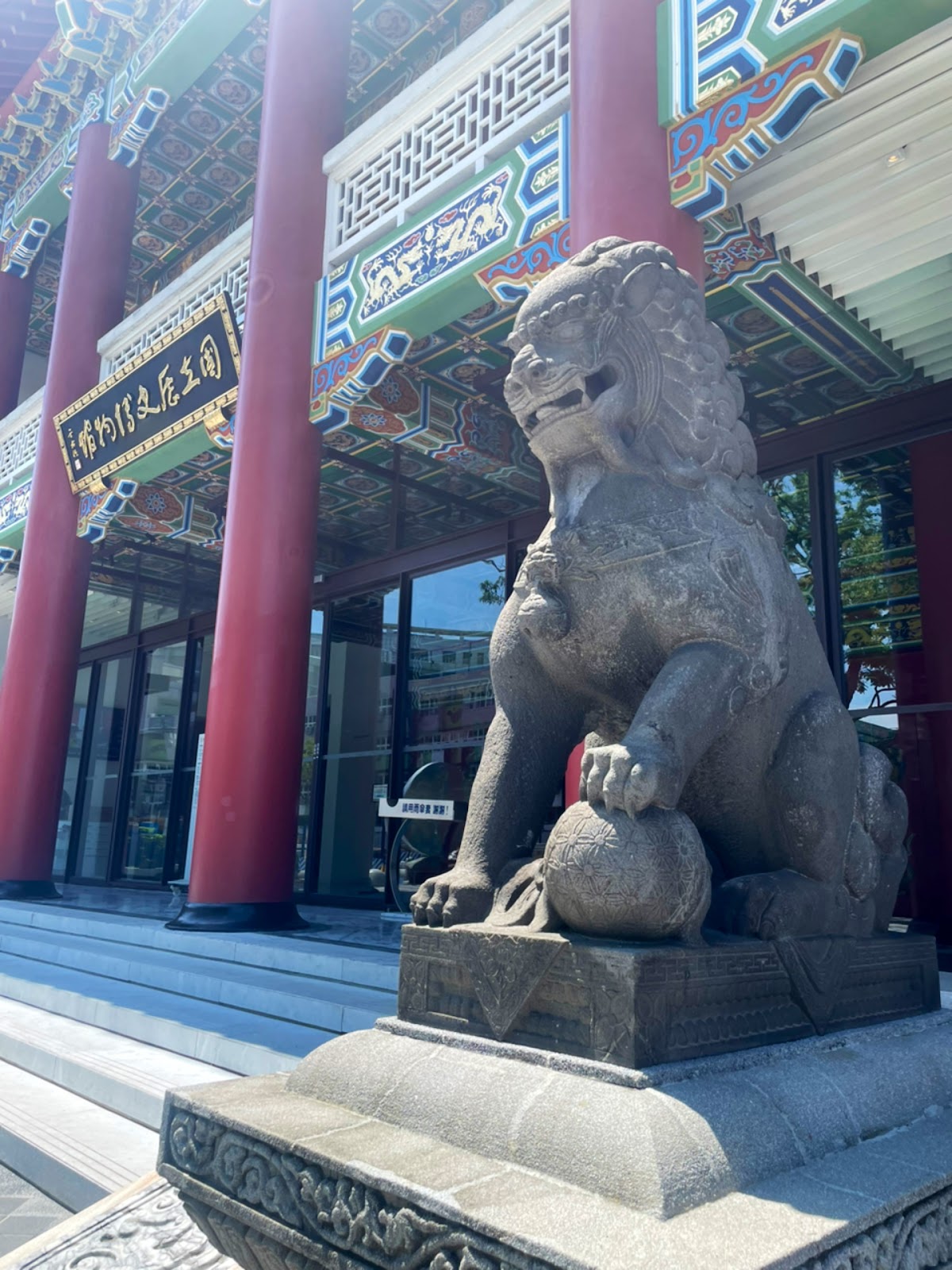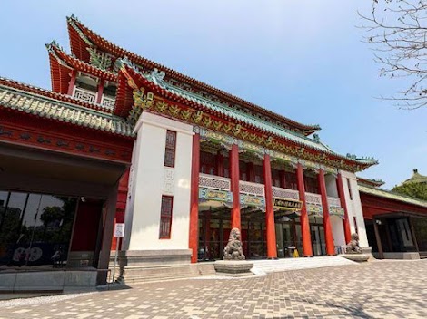 爬梳官網,前身是日式木造建築的迎賓館,1950年至1970年,歷經數次大小規模擴增改建,成為今日鋼筋水泥傳統的北方宮殿樣式,2007年經北市府指定登錄為「歷史建物」。2013年開始規劃、2019年3月起執行修復及再利用工程,保留原有建築特色「彩繪」及「琉璃瓦作」,2024年初竣工並重新開館營運,在新舊工法結合下,賦予嶄新樣貌,除了保有珍貴文物與豐厚獨特的人文景觀色彩外,更具有豐富記憶和深厚情感及凝結集體記憶的重要文化資產場域,也移掉傳統藩籬圍牆,加上主建舘重新粉刷的朱紅塗牆與墨黑圖記,值得遠觀近眺她華麗風貌。