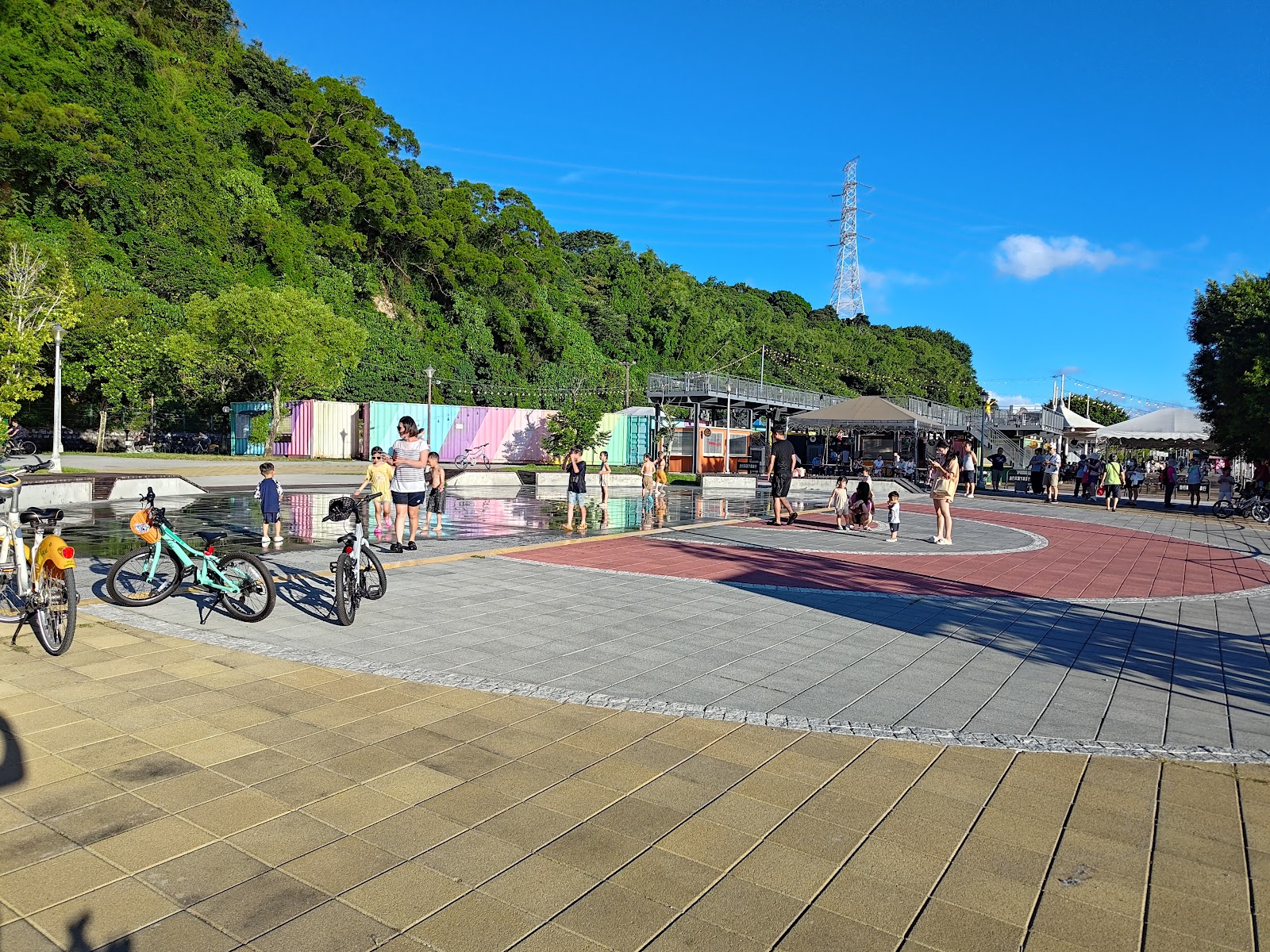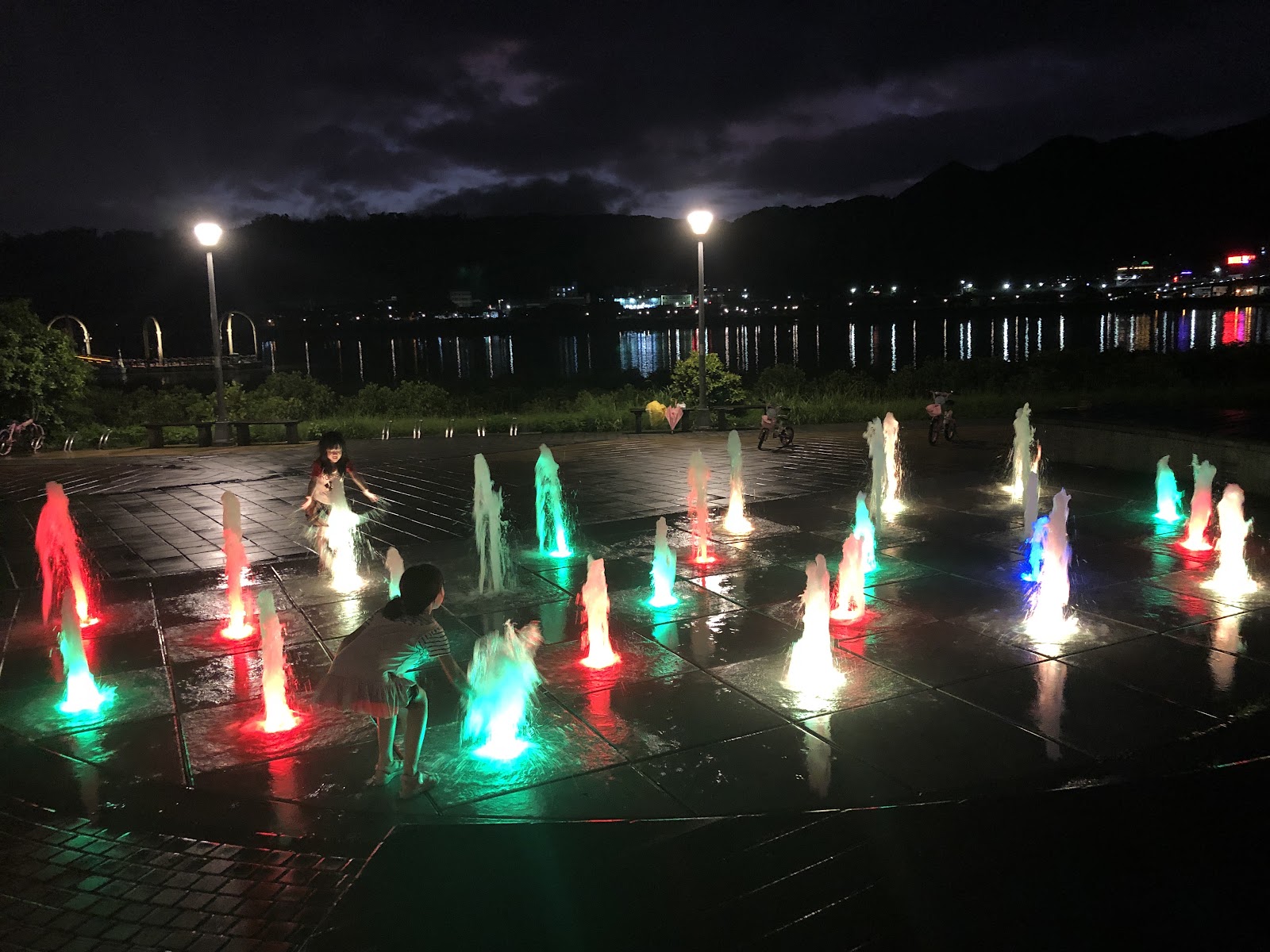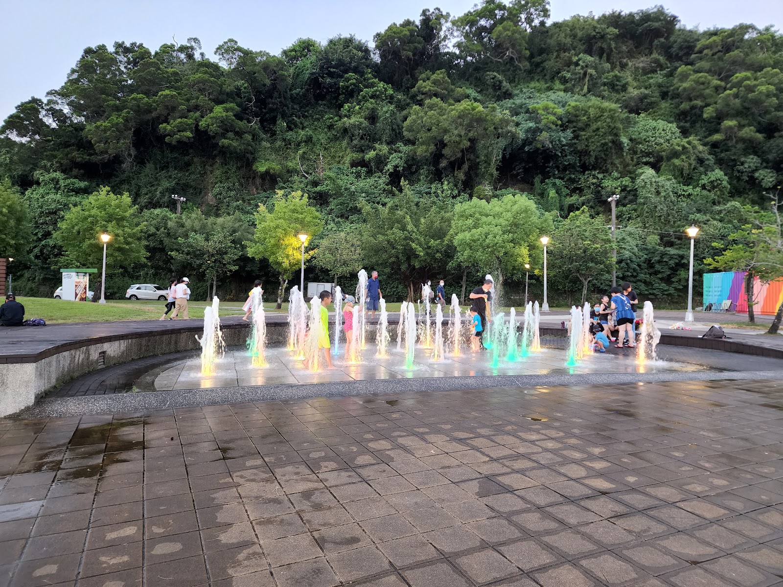 終於完工了 ,水池很大 ,目前只有晚上時間有噴水,白天很熱應該要有才能消暑,旁邊有個沙坑,燈光明亮,有廁所、洗腳區很方便,餓了旁邊有貨櫃市集, 可以帶小朋友來這裡玩水。