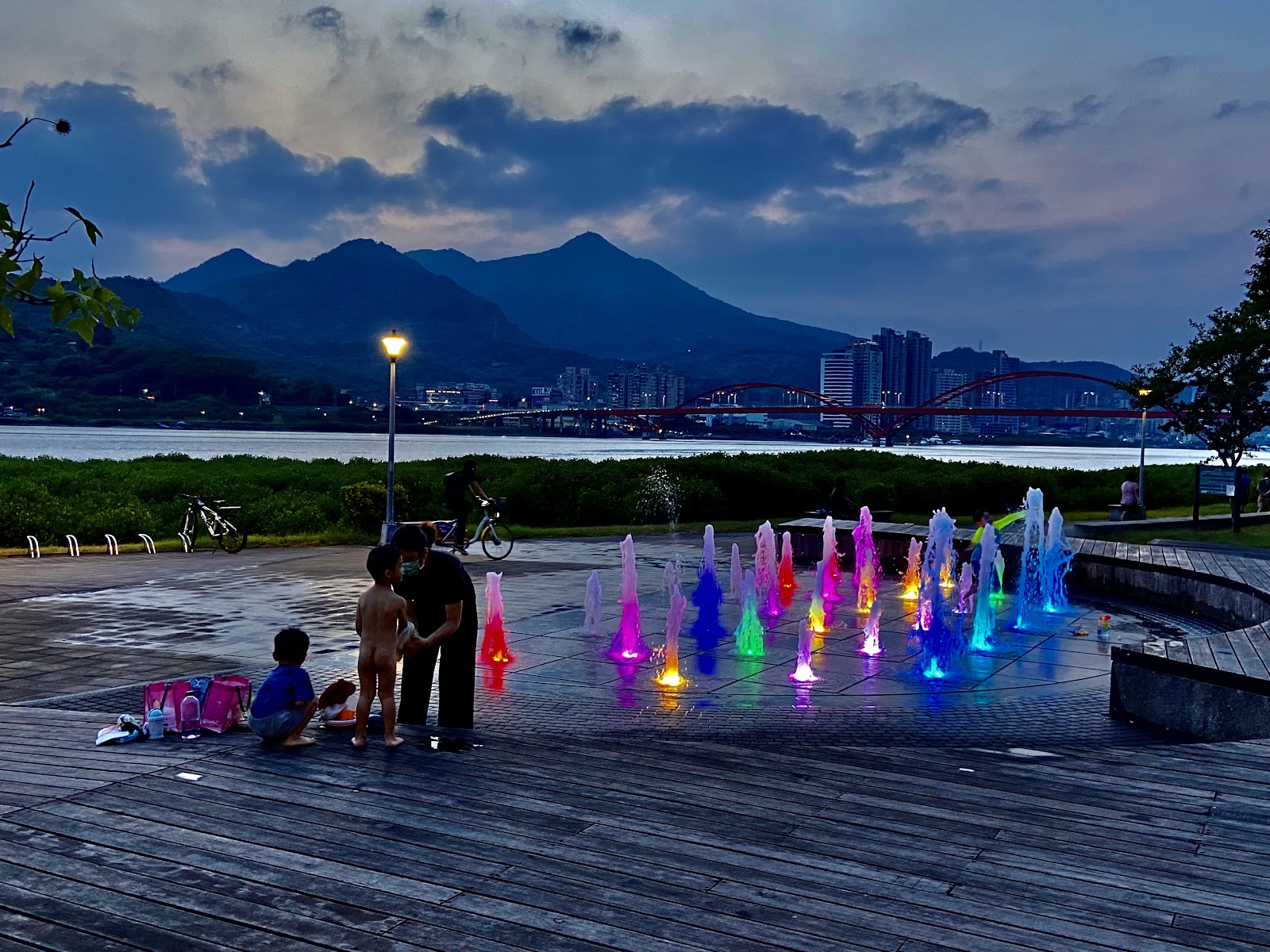 傍晚散步到關渡碼頭噴水池,剛好遇到水柱打上去那瞬間有點浪漫ㄟ。風有點涼我差點後悔沒穿外套。旁邊小朋友在追來追去超可愛,我就坐著喝冰美式放空一陣子。偶爾來這裡吹吹風真的蠻舒服的。