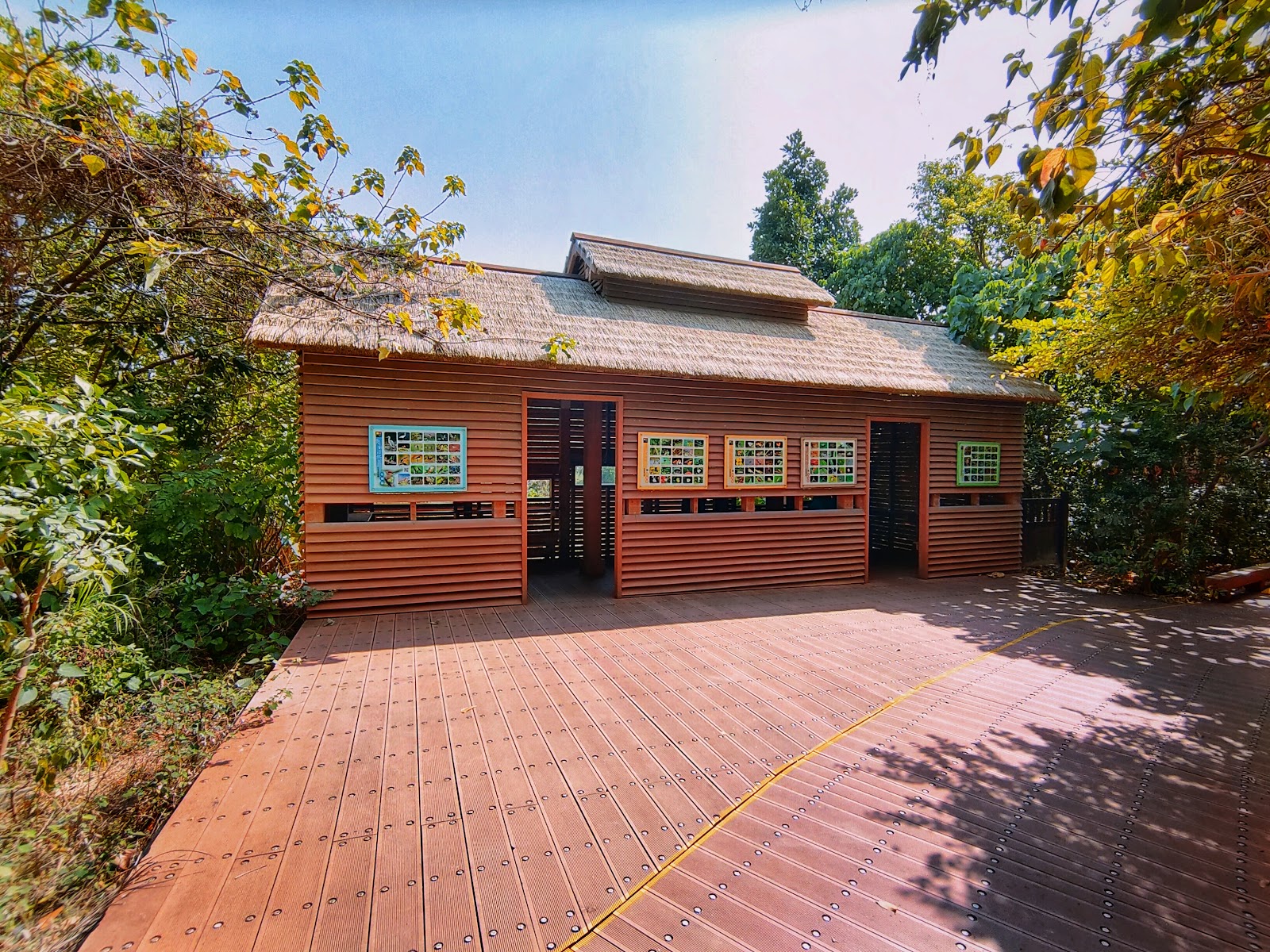 在澄清湖公園大門旁邊的一座小型濕地公園,樹木鬱鬱蔥蔥,沿著木棧道健行,途中會經過教育中心小木屋、小湖泊、賞鳥屋,還有一些人工培育的植物園區等等,十分陰涼,而且景色還不錯。