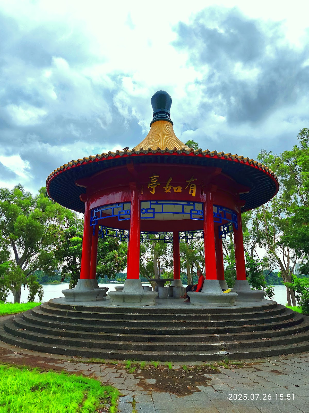 @· 有如亭:位於中央,為圓形官式(北式)建築,擁有金色亭頂與紅色亭柱。其名「有如」出自東晉祖逖渡江擊楫、誓清中原的典故。