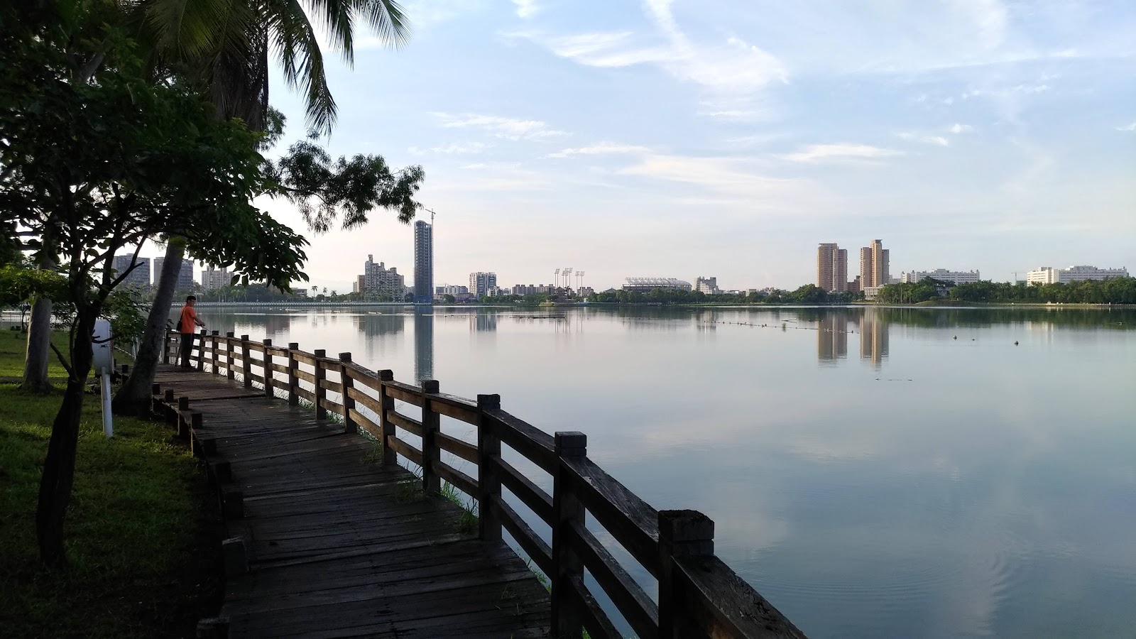晨曦曙光乍現之時走在澄清湖木棧道欣賞美景聞著檸檬桉樹散發出來的芬多精如沐春風般的舒服太陽緩緩升起湖光水面倒影此時景色優美豁然發現富國島近在眼前如此清晰可見不難想像他是多麼的神秘是許多情侶遊湖幽會的好景點之一隅喔