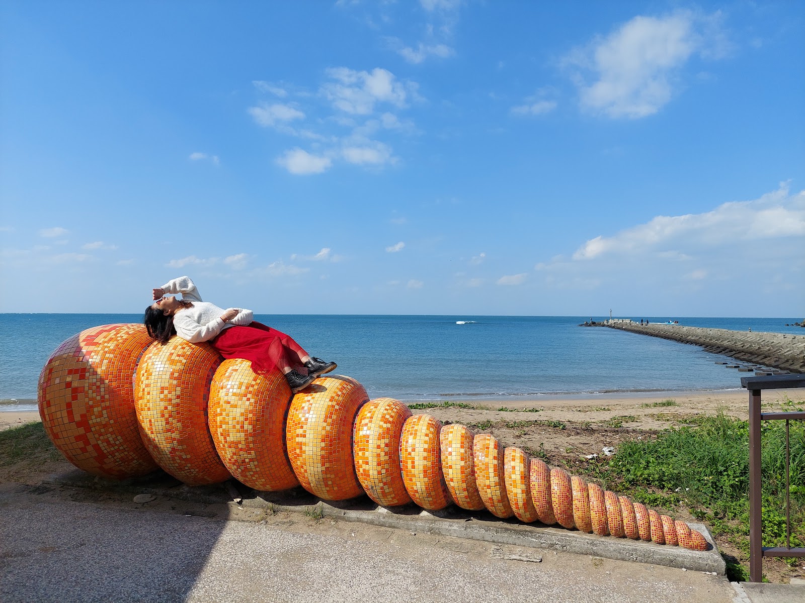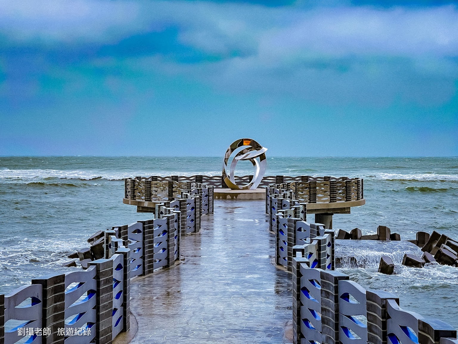 沿著水藍色的波浪長廊前行,彷彿走進海中央,讓人以360度無死角的遼闊視野,欣賞絕美海景,搭配平台終點的浪漫裝置藝術,成為情侶約會、遊客必訪的打卡景點。