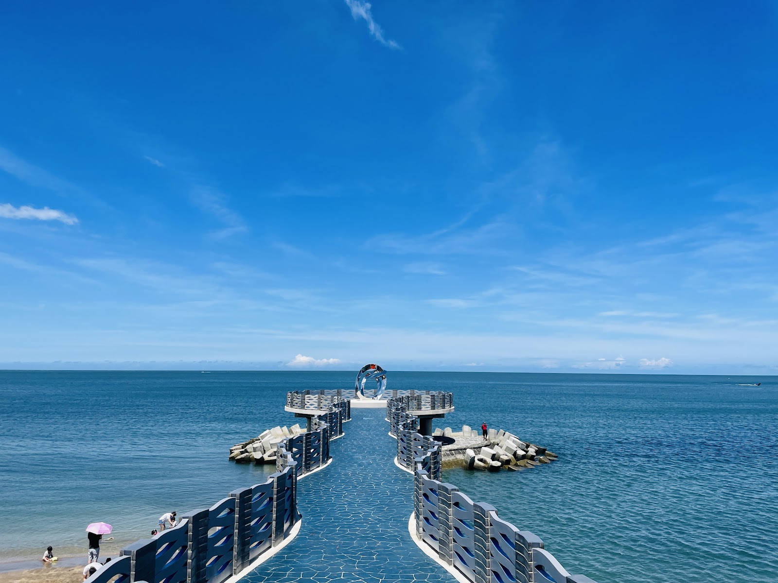 平台全長約57公尺,呈水藍色波浪長廊,延伸至海中央,讓遊客彷彿漫步於海上,享受360度的海景視野。平台終點設有象徵愛情的超大型婚戒裝置藝術,成為情侶拍照打卡的熱門景點。假日人真的非常的多。