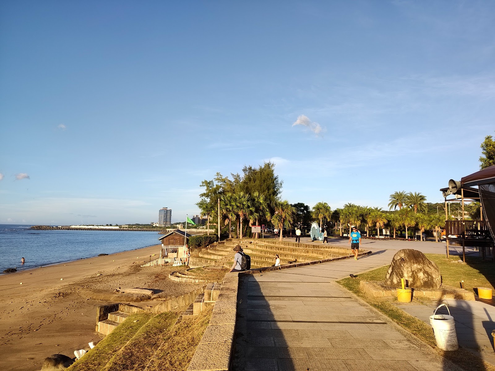 適合早上或傍晚來散步、休閒,中午較不適合因為海邊又無遮蔽物太陽大的話會受不了。