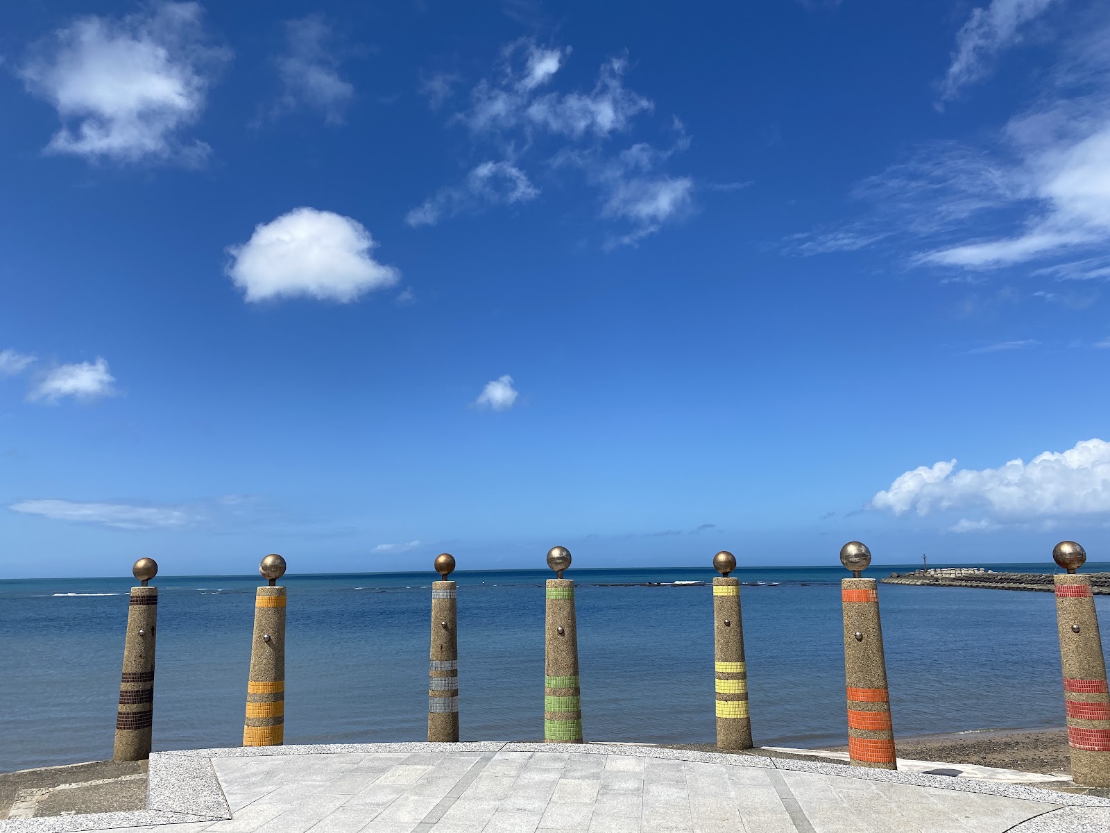 散步觀海的好地方,很美造景觀海平臺及延著海岸線步道走,風景都好美,藍藍的天,白白的雲,配著藍藍的海,美不勝收👍.海邊的各家店都有各自的特色,散步後想吃😋點飲食是不錯的選擇