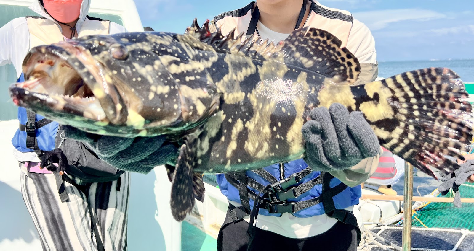坐船出海餵食體驗,還有跟石斑魚拍照