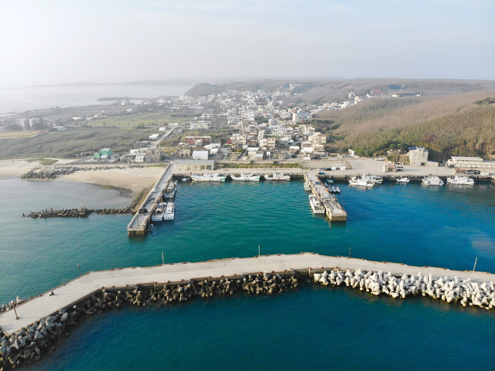 但遠遠還是看得出彩色的消波塊,這個漁港很安靜、很舒服~