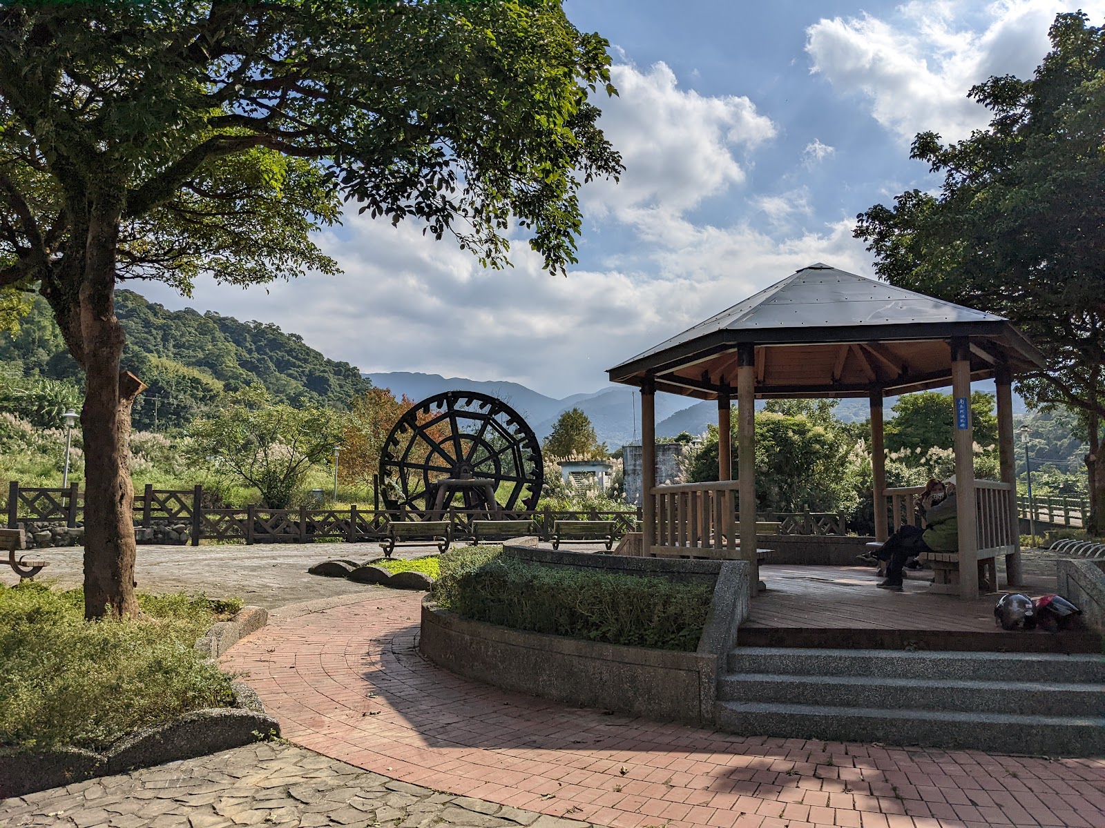 算是個小公園,內有一個涼亭、一個大水車和兩個小水車。其中一個小的沒水不會轉。