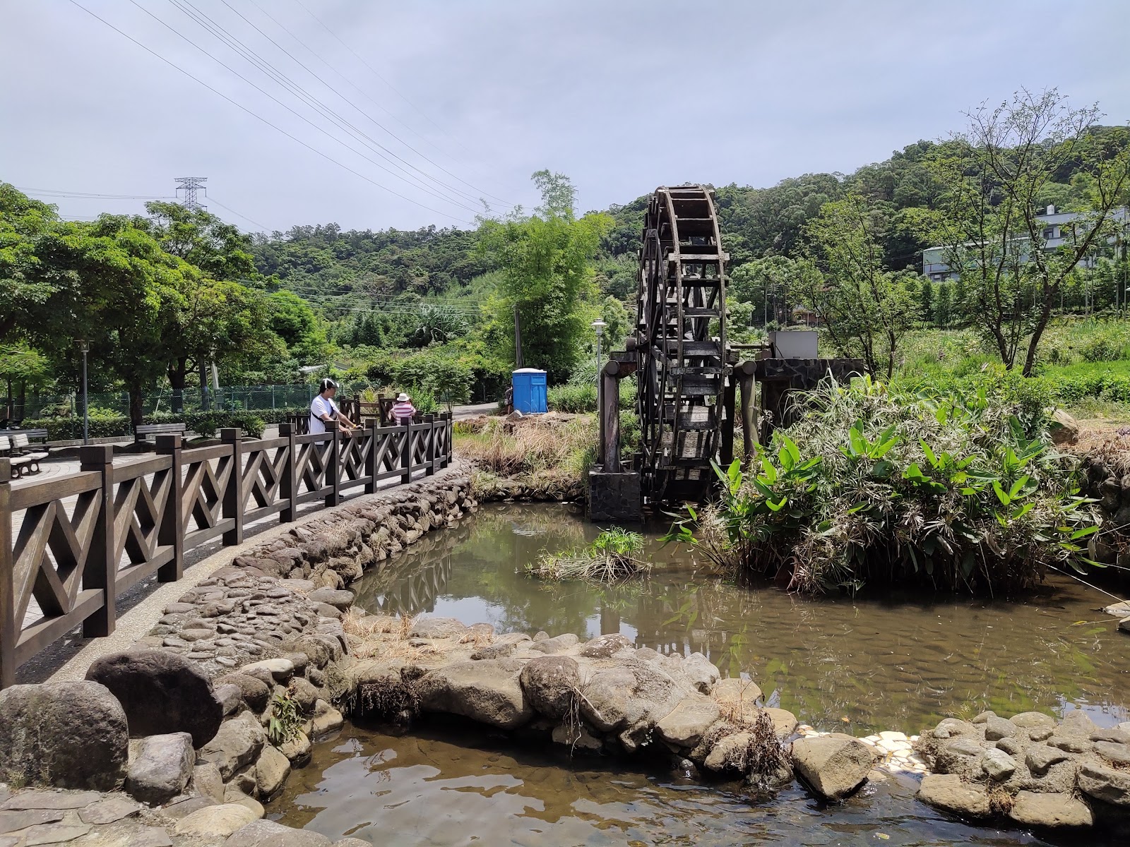 有一個大的兩個小的水車 很陰涼 三芝好熱