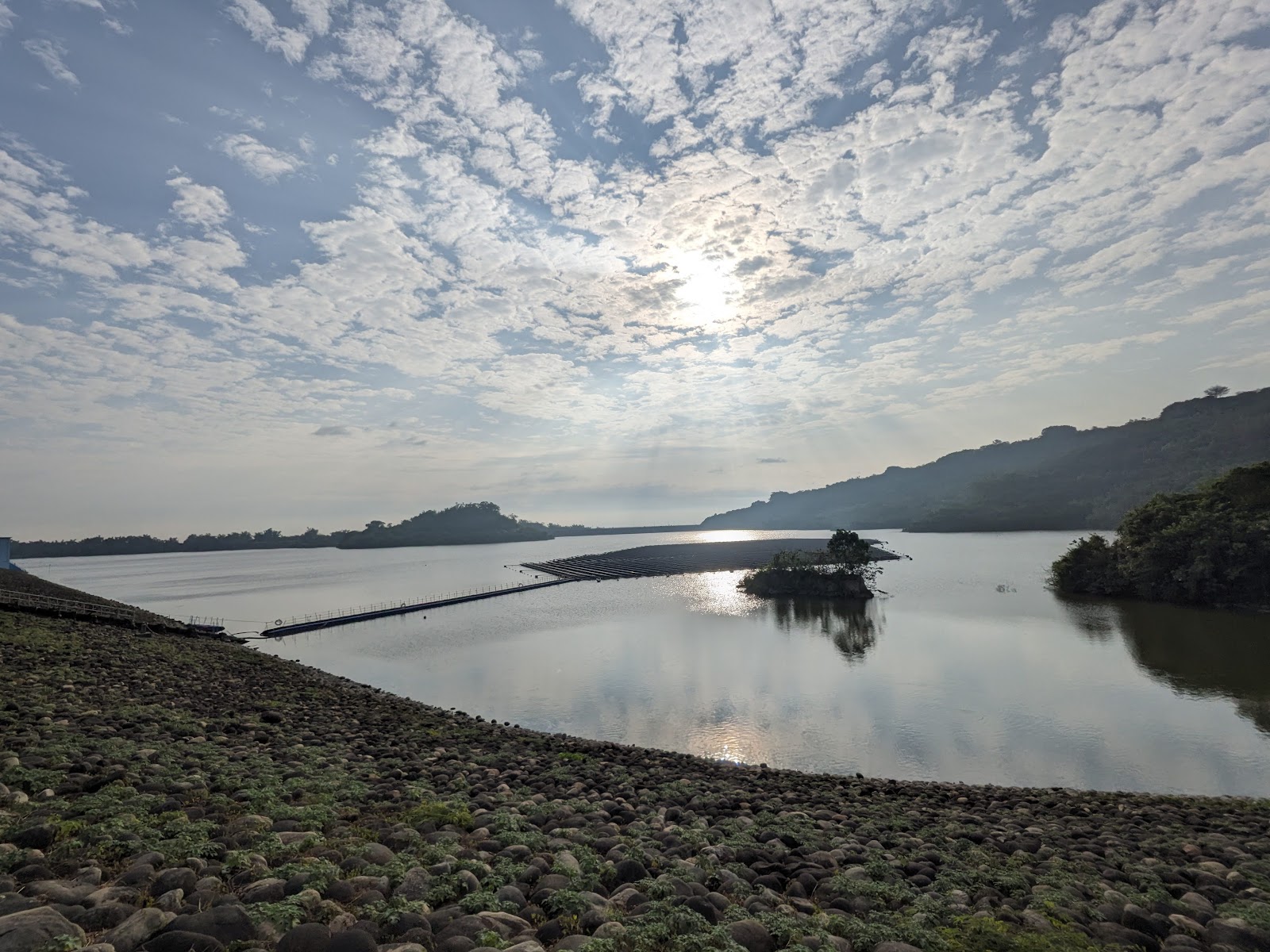 很快就看到水面坦白說並不大,繞水庫一圈大約30~40分鐘,黃昏時太陽沒那麼曬,水面會吹起除除涼風,坐在堤防邊看者水面,水面很美,偶爾還有水鳥、鳥類飛過,停在附近覓食,看了空曠水面真的舒服。
