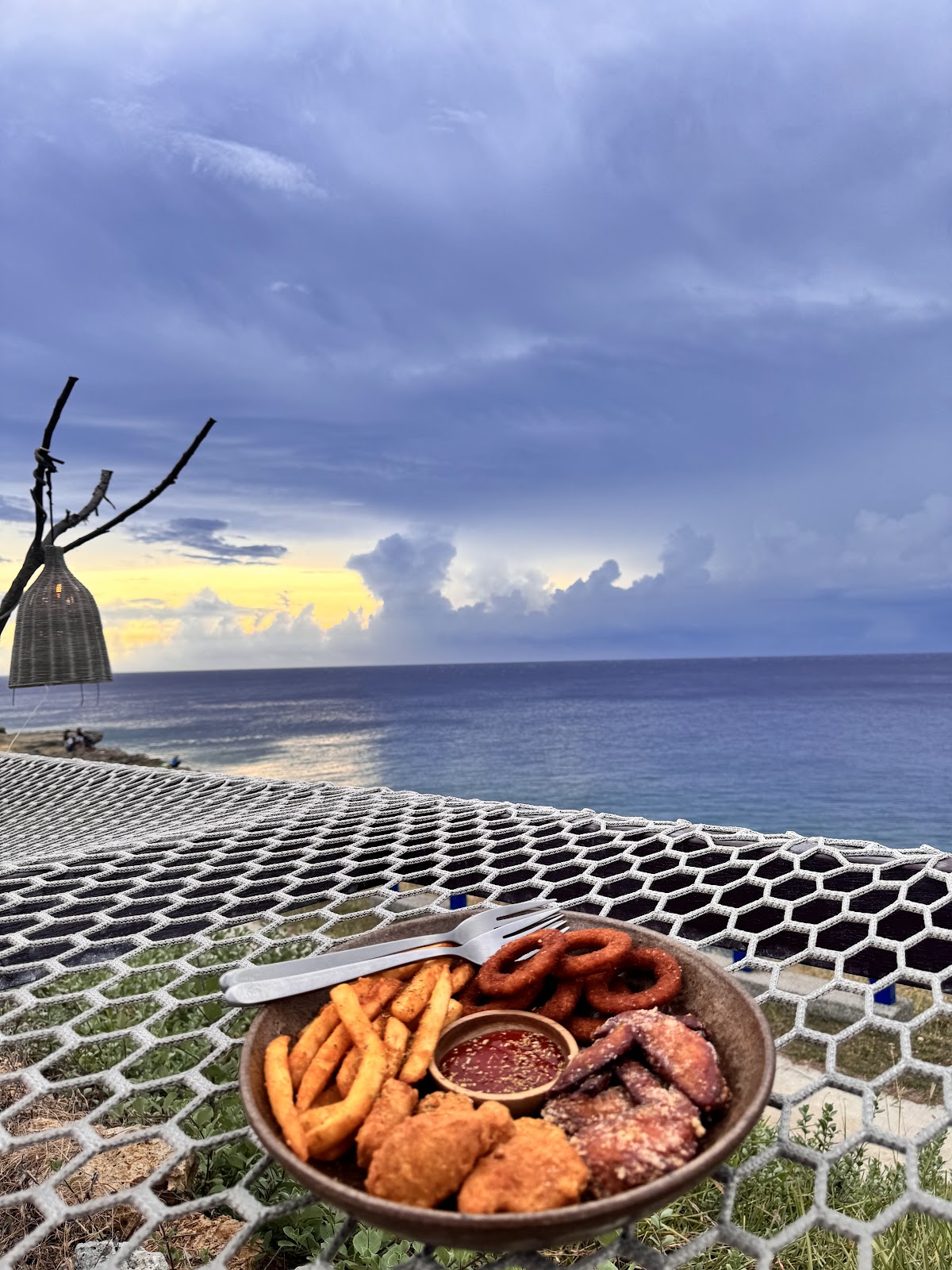 這間景觀餐廳真的讓我驚艷,位在高處可以眺望整片海景。餐點部分有用心,不只好拍也好吃,尤其是他們的海鮮料理很新鮮。推薦黃昏時段來,可以一邊用餐一邊看夕陽,氣氛滿分!