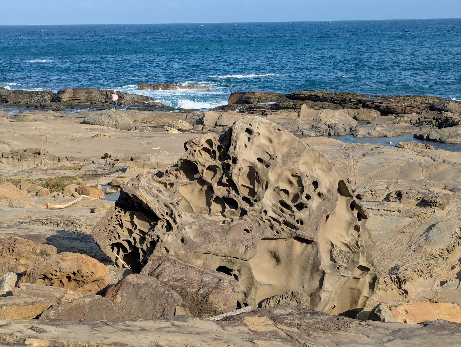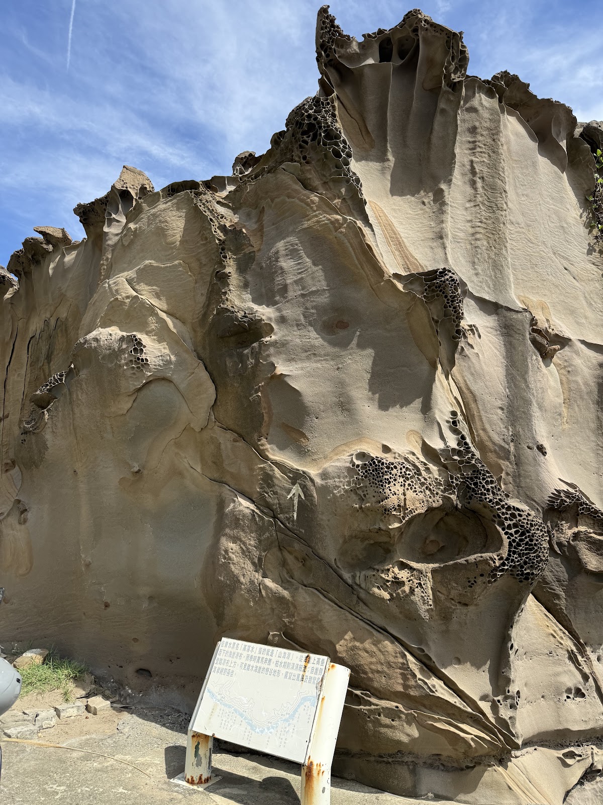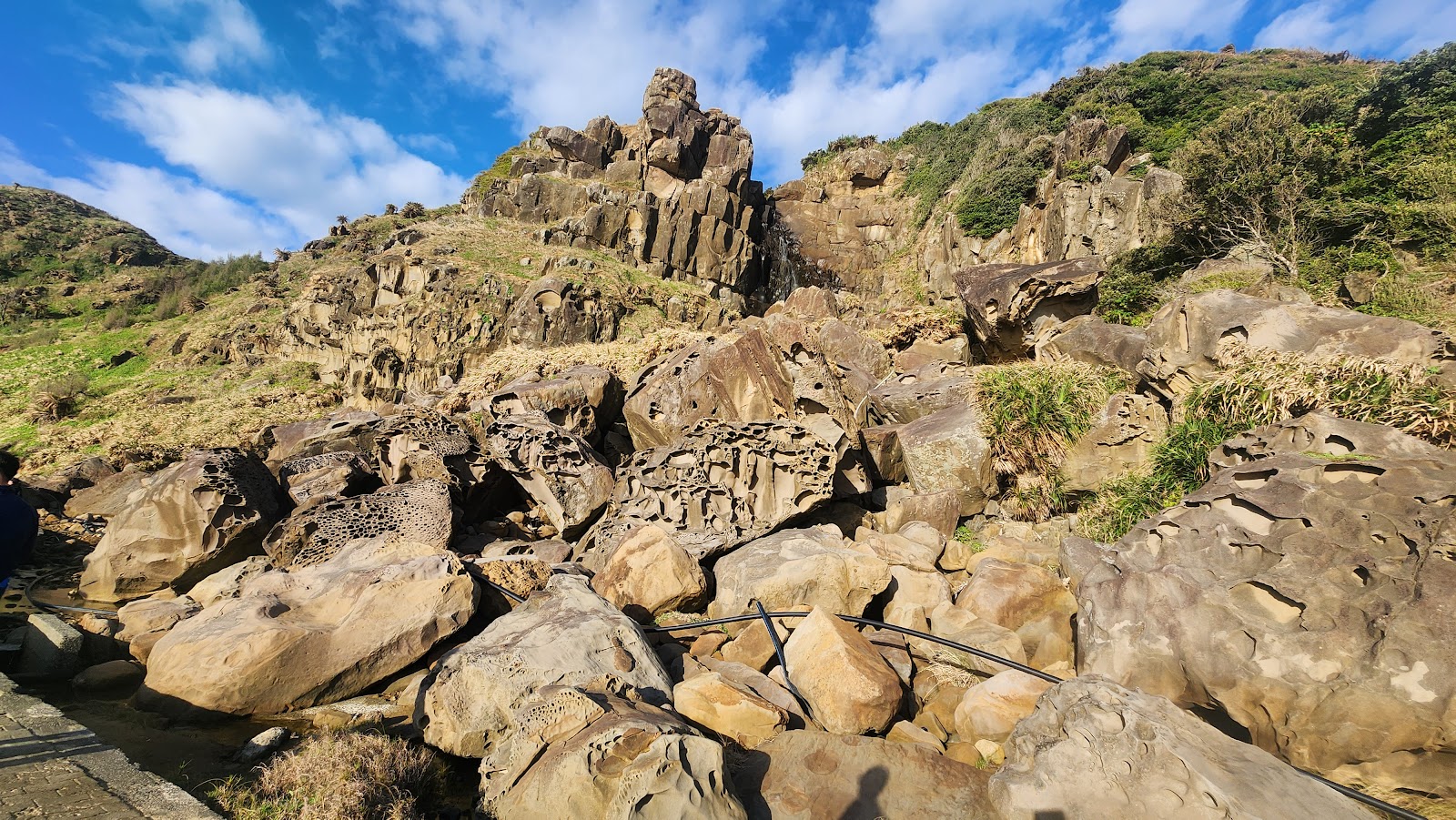 - 全長**2.5公里**的海岸線,受太平洋強風與海浪侵蝕,形成蜂窩岩、壺穴、棋盤石等特殊地貌,還有栩栩如生的海蛙石、兔石、犀牛岩、軍艦岩等天然雕塑,宛如露天地理教室。
