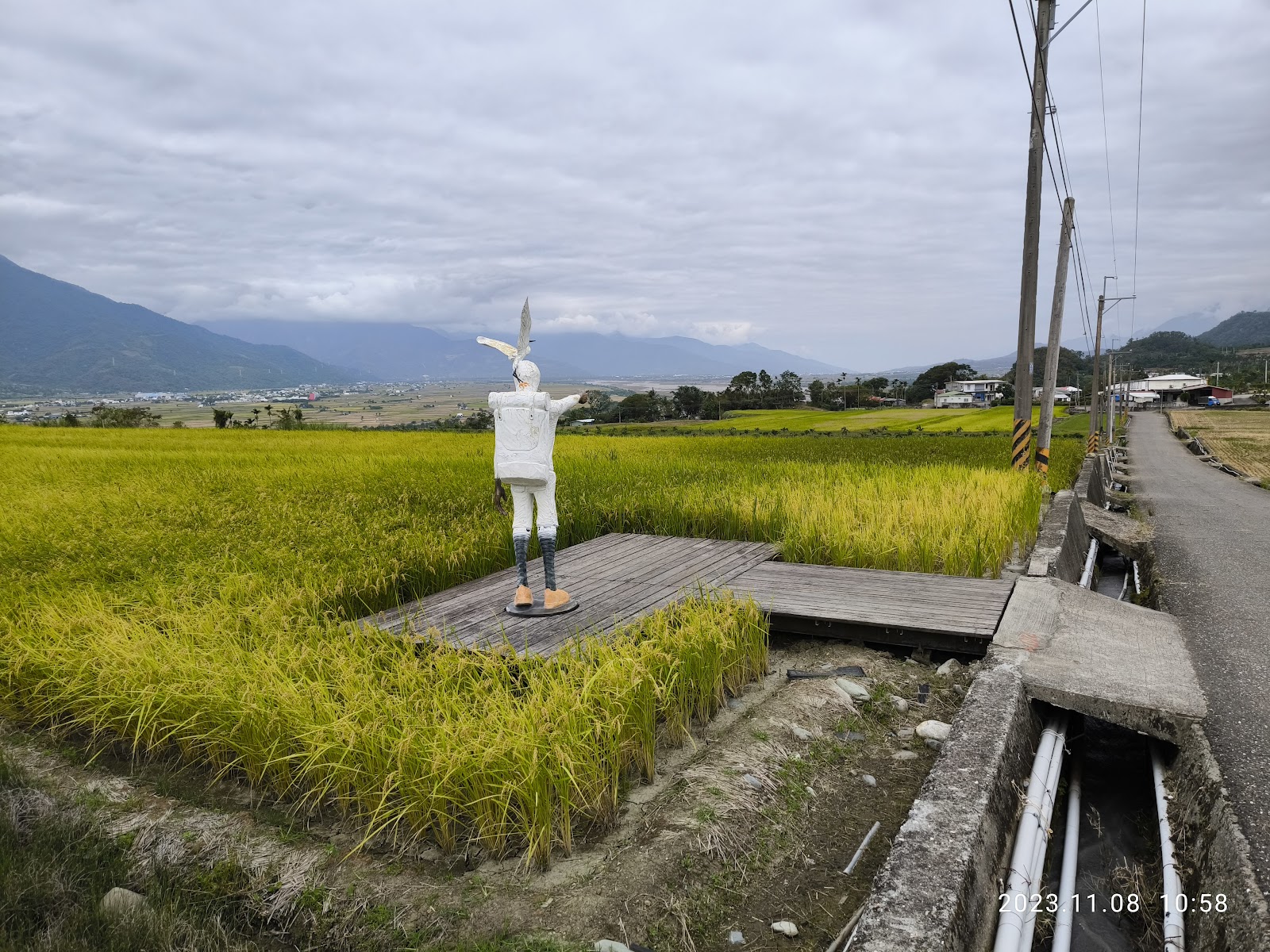 位於197鄉道上有指標往田間道路上,可雙向會車,處於半山坡稻田裡的一個雕像,適逢金黃色的稻米熟成時,風景宜人。