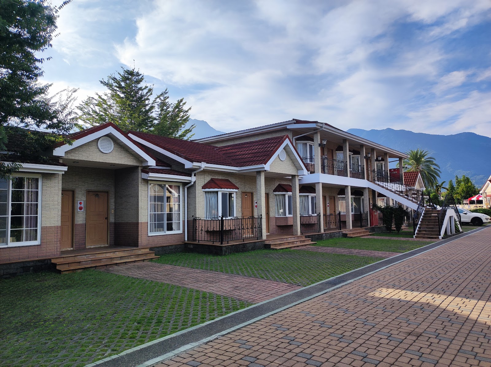 感覺很舒服,住宿房間前面即是停車場早上還有洗車服務,晚餐餐點也不錯