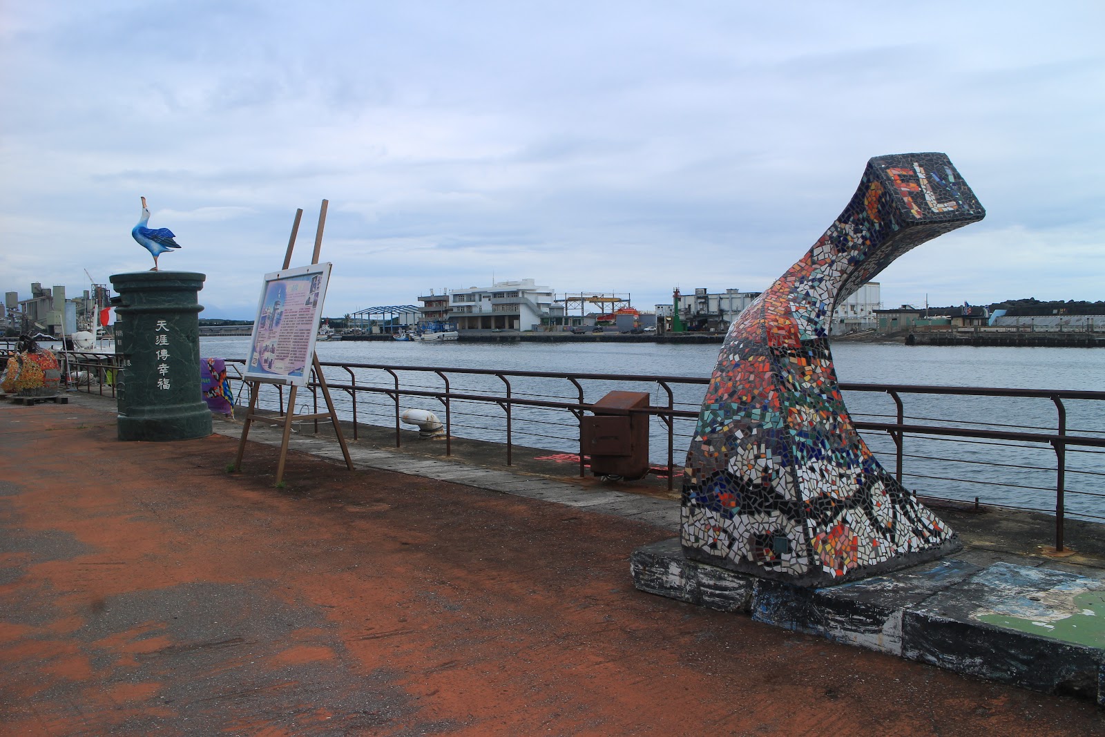 雖然稱為親水遊憩區,其實不能親水,也沒有遊憩設施。原來進駐在這裡的畫廊和幸福青鳥郵筒已經搬遷,目前還有留下一些公共藝術作品,傍晚時分比較涼爽。