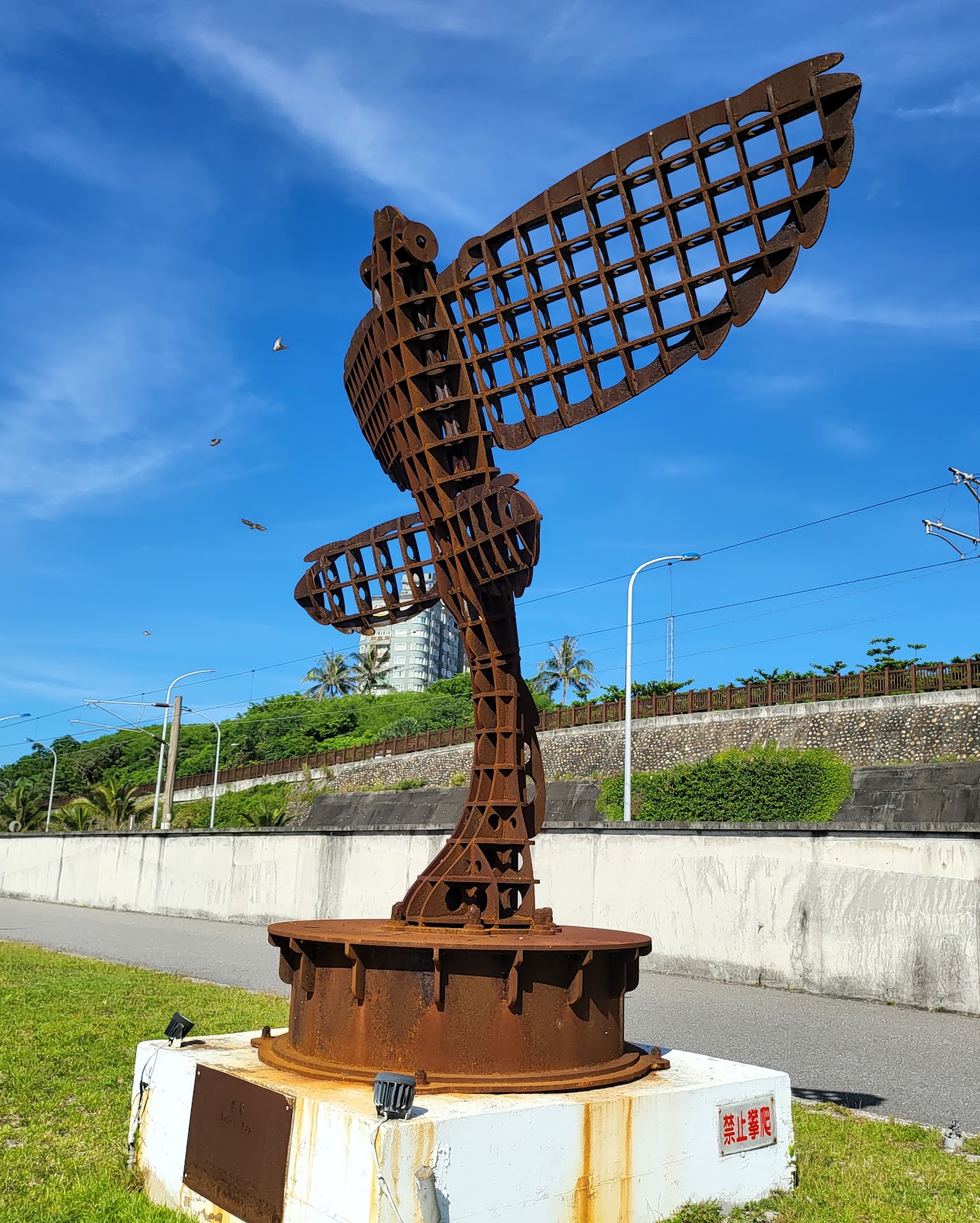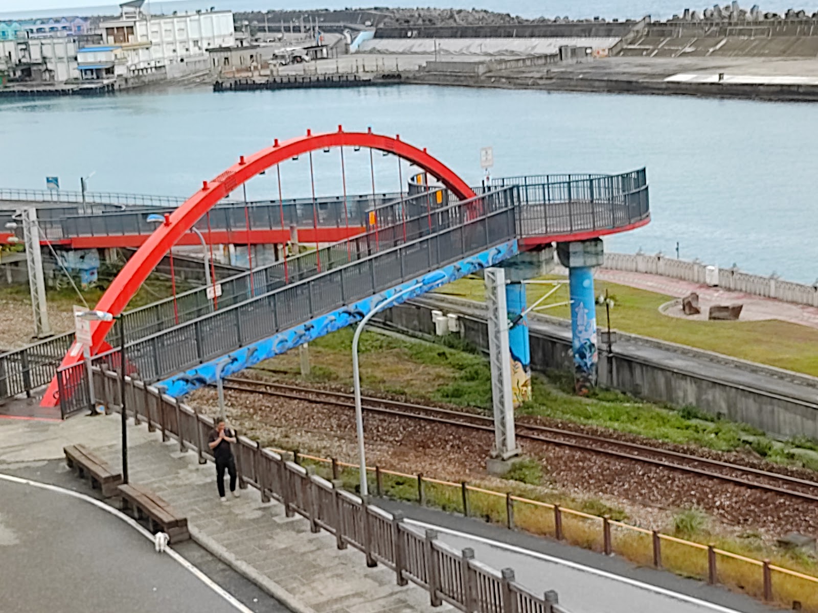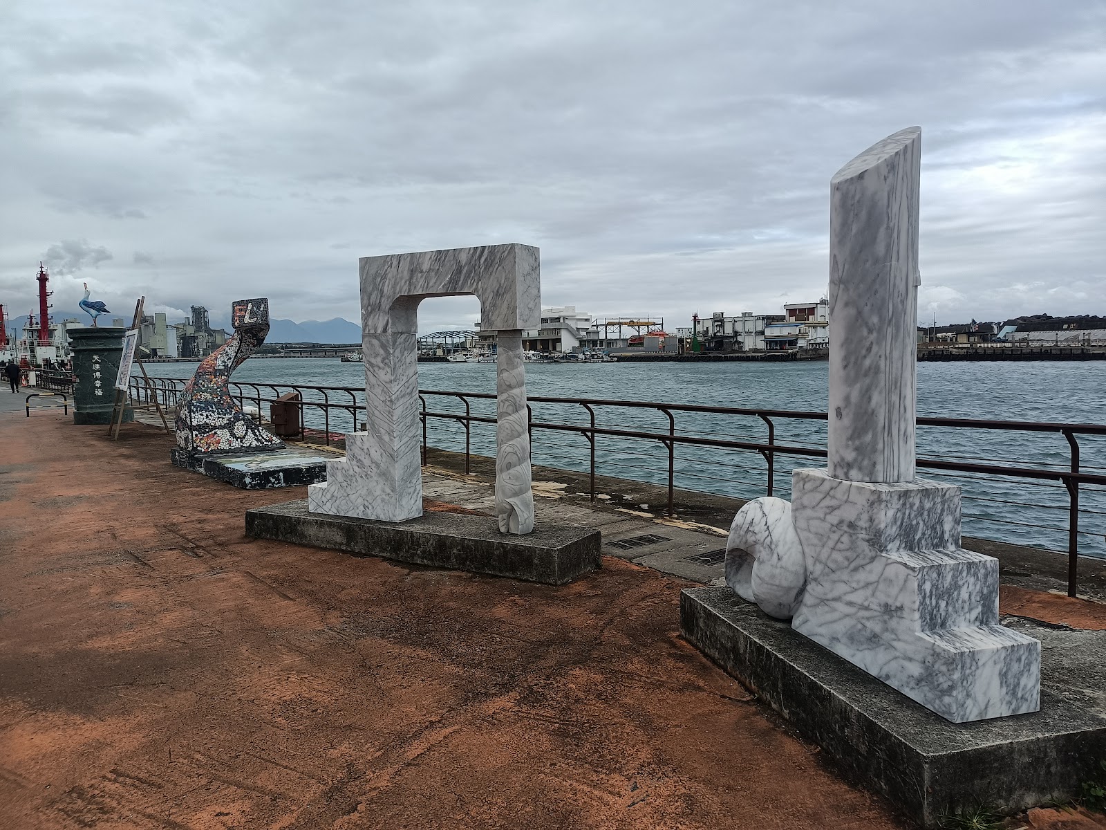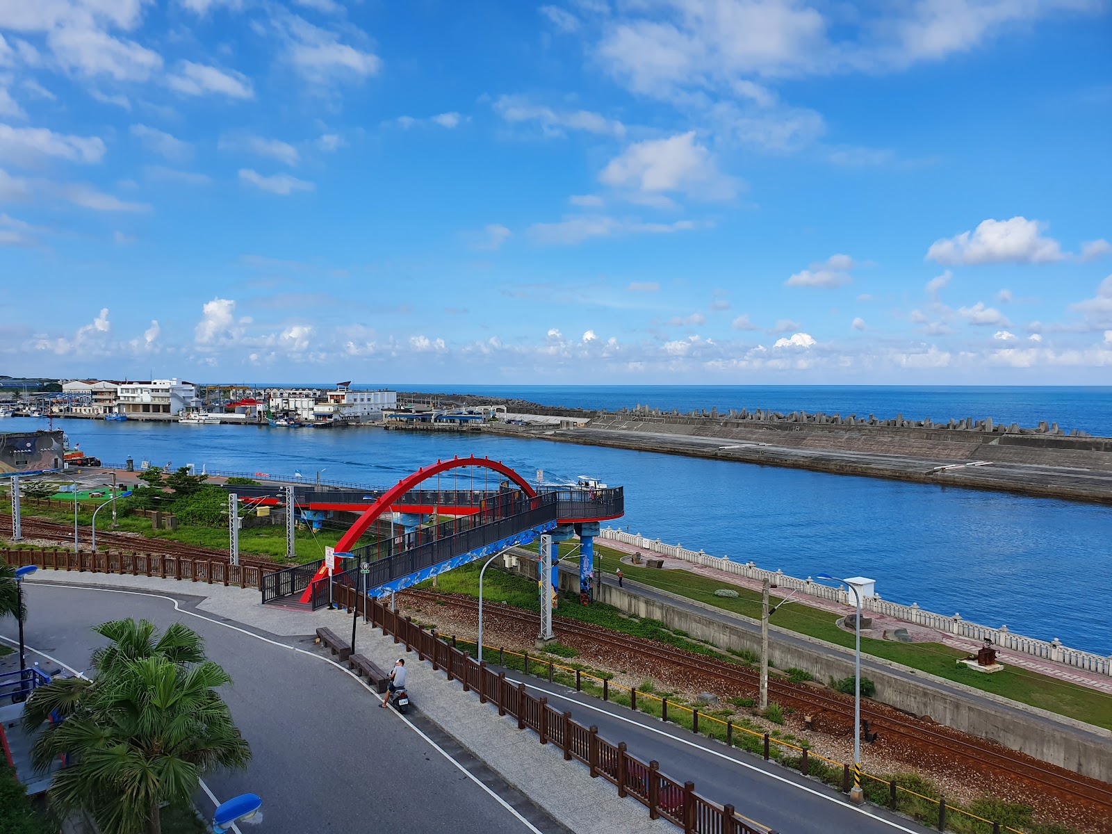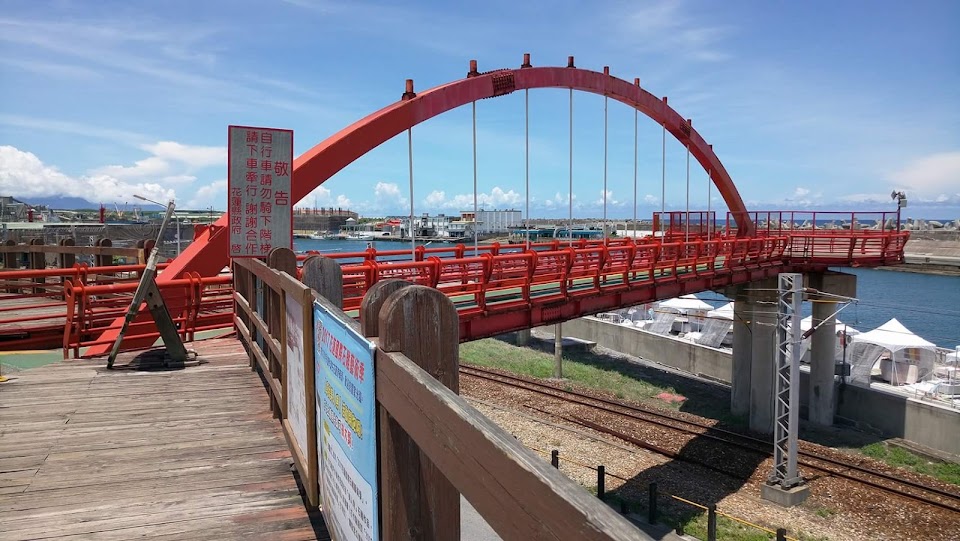 這裡是兩潭自行車道的花蓮港區段,距七星潭約7km,花蓮市區4.5km,設有景觀橋展望台跟藝術品(金屬跟石材)與原石製郵筒,也可觀賞船舶入港!路旁腳踏車道到花蓮市區段林木成蔭適合騎腳踏車跟散步是花蓮在地人的健康步道!