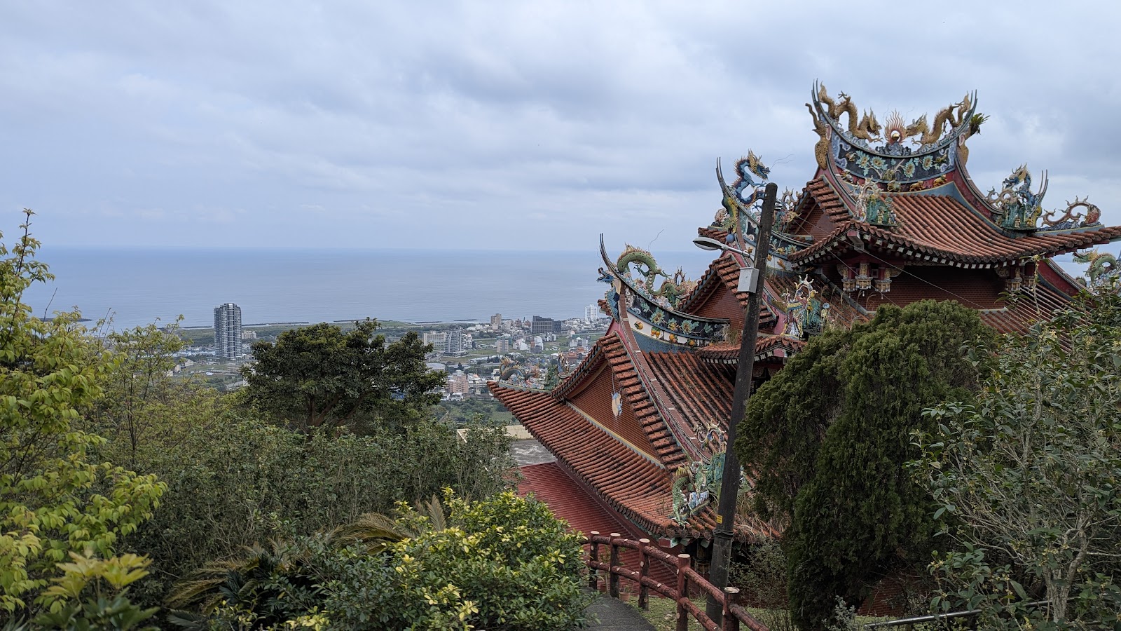 路有些地方需要會車,宮旁邊有空地可以停,可以眺望龜山島跟市景的好地方!