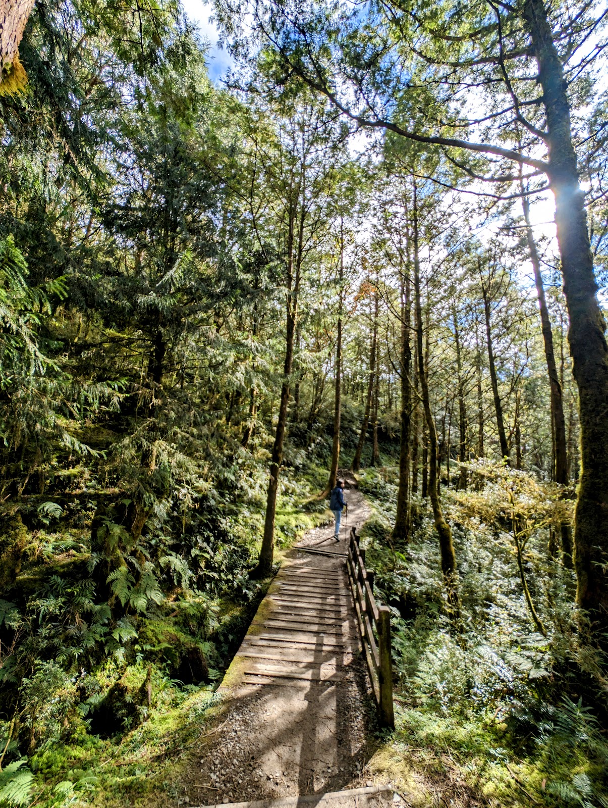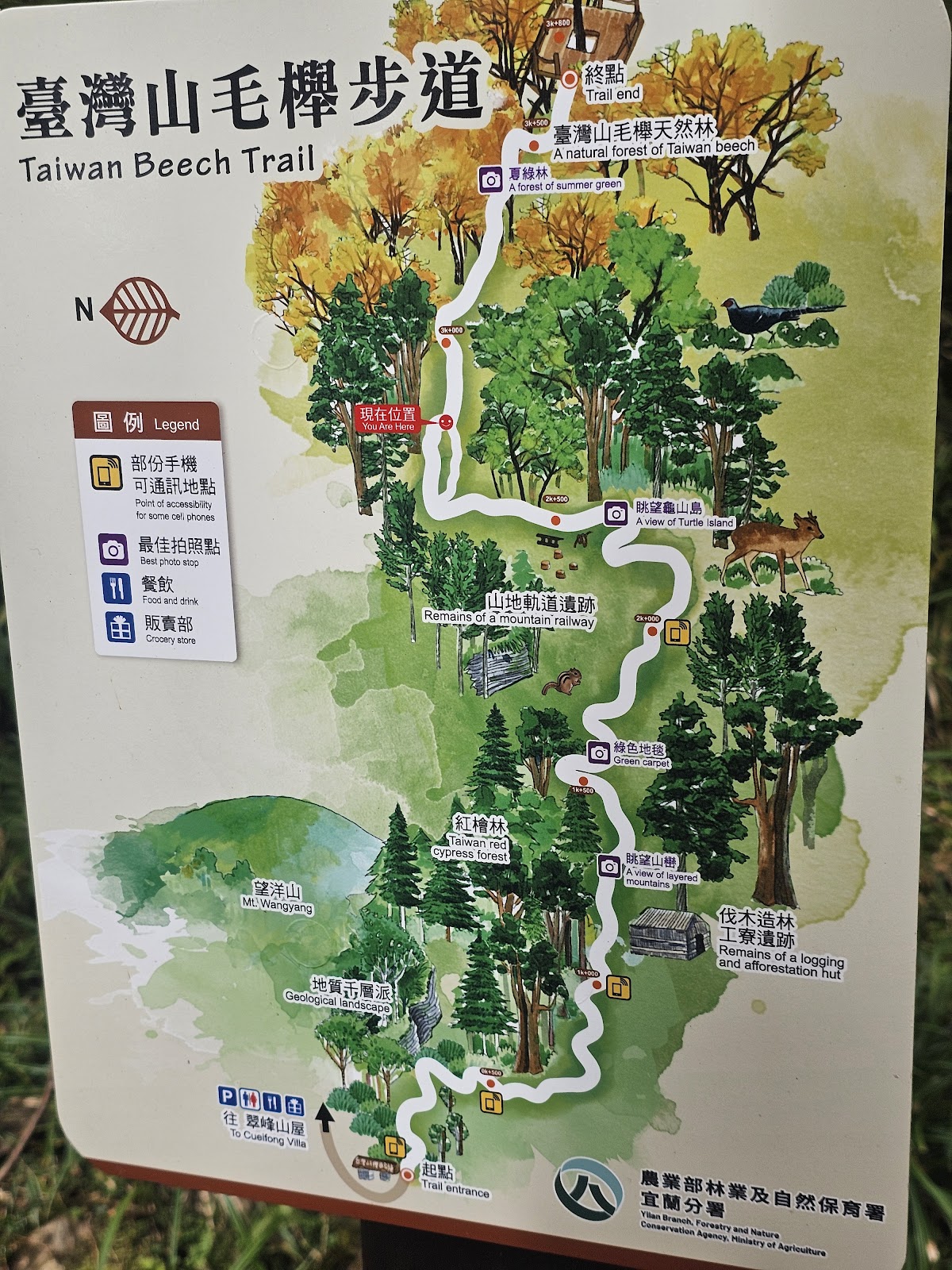 來太平山這麼多次,第一次來到山毛櫸步道,全長3.8公里前面2.6公里都是非常好走的平面道路,但是到2.7 2.8公里之後直線下降都是階梯山毛櫸的最多地方大概就在3.3 3.4公里左右,這一次來因為季節不對,所以看到都是剛發芽的綠色等下次再有機會來看整片黃色的山毛櫸