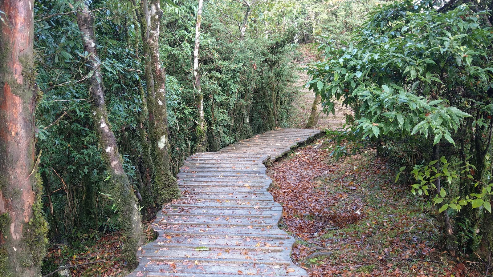 步道前段平緩好走,步道因地型氣候因素易潮濕泥濘,部份路段會因積水成單行道或狹窄需互讓通行,2.5k後有約0.5k的陡下距離,3.1k開始才可看見山毛櫸景觀,直到3.8k終點這段屬於山毛櫸範圍景色,舒服漂亮。