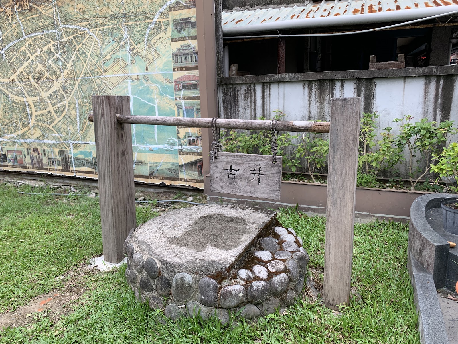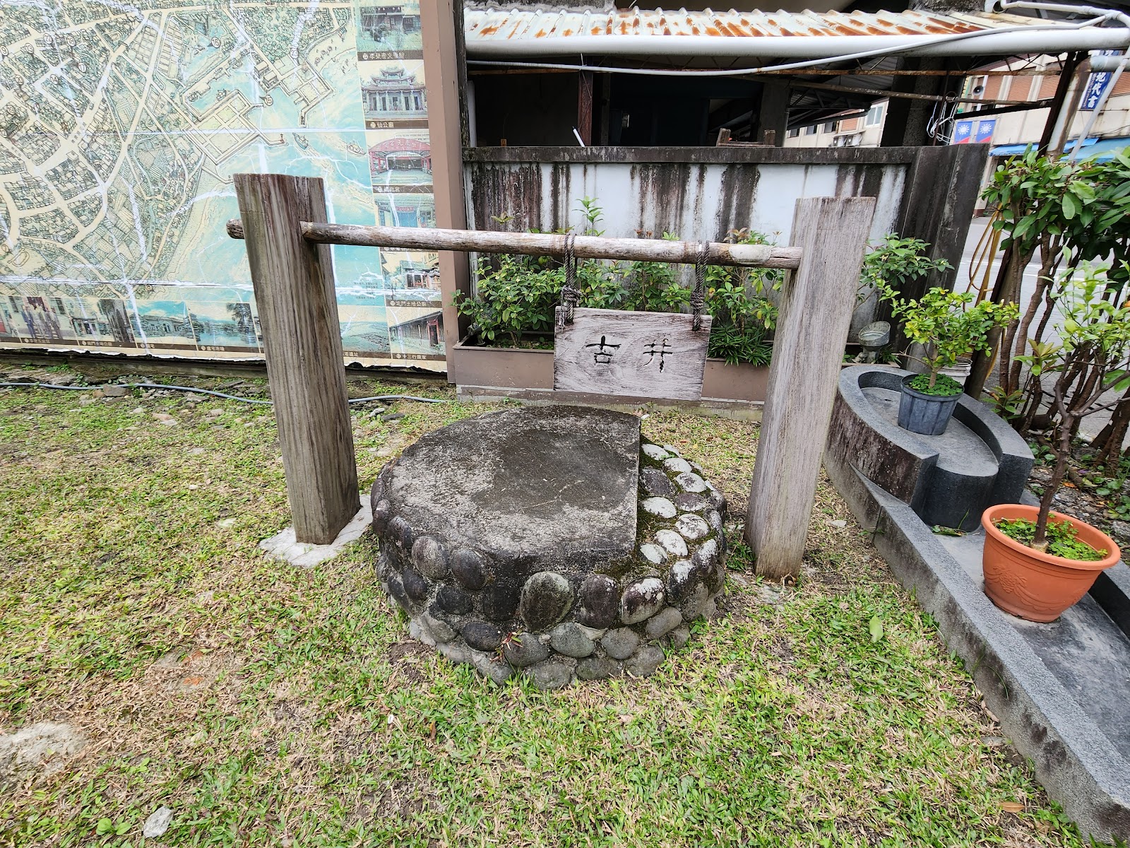 傳統日式建築,一旁有古井。