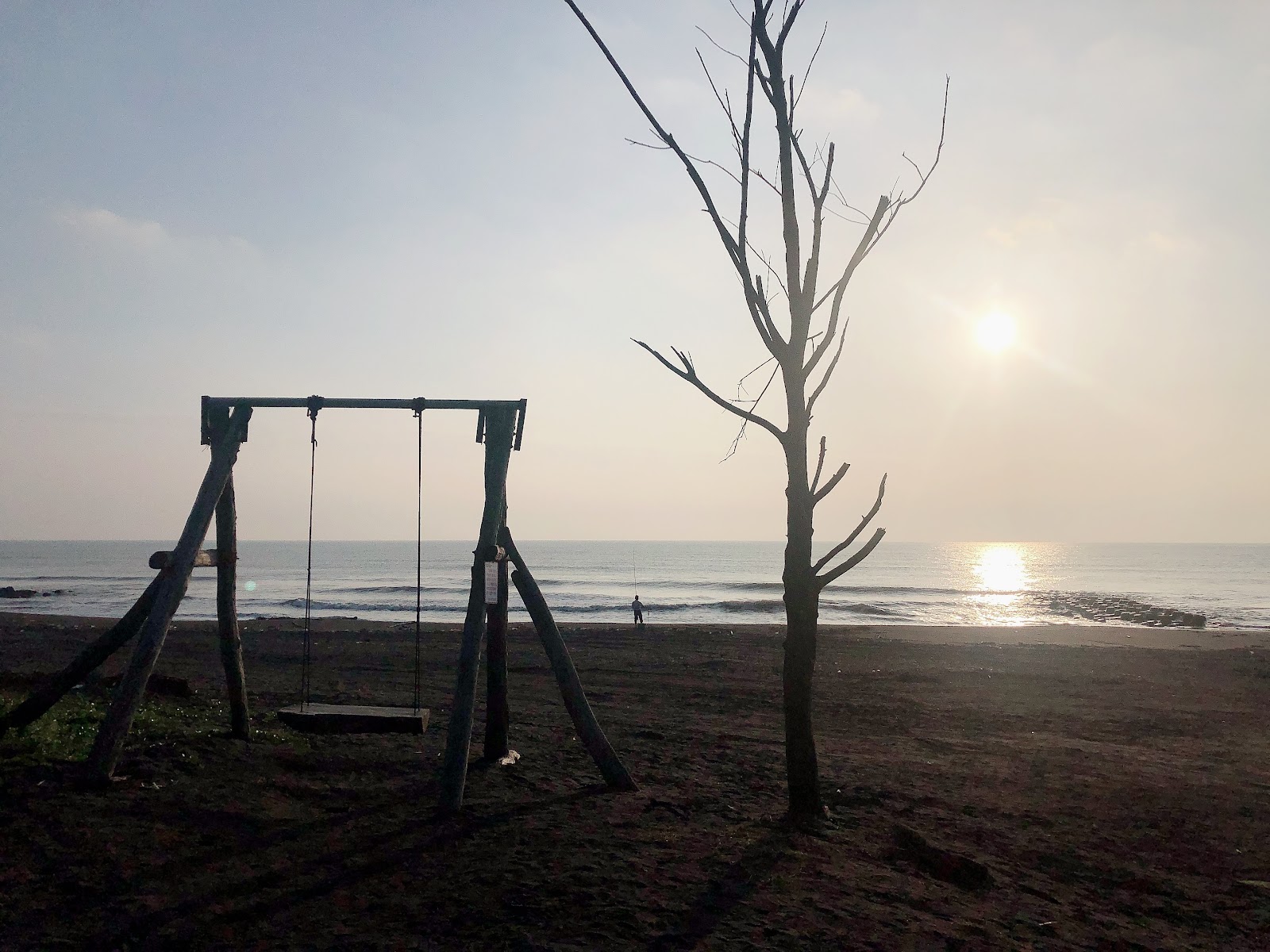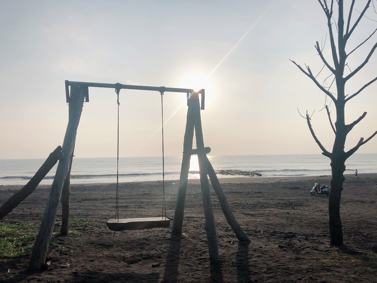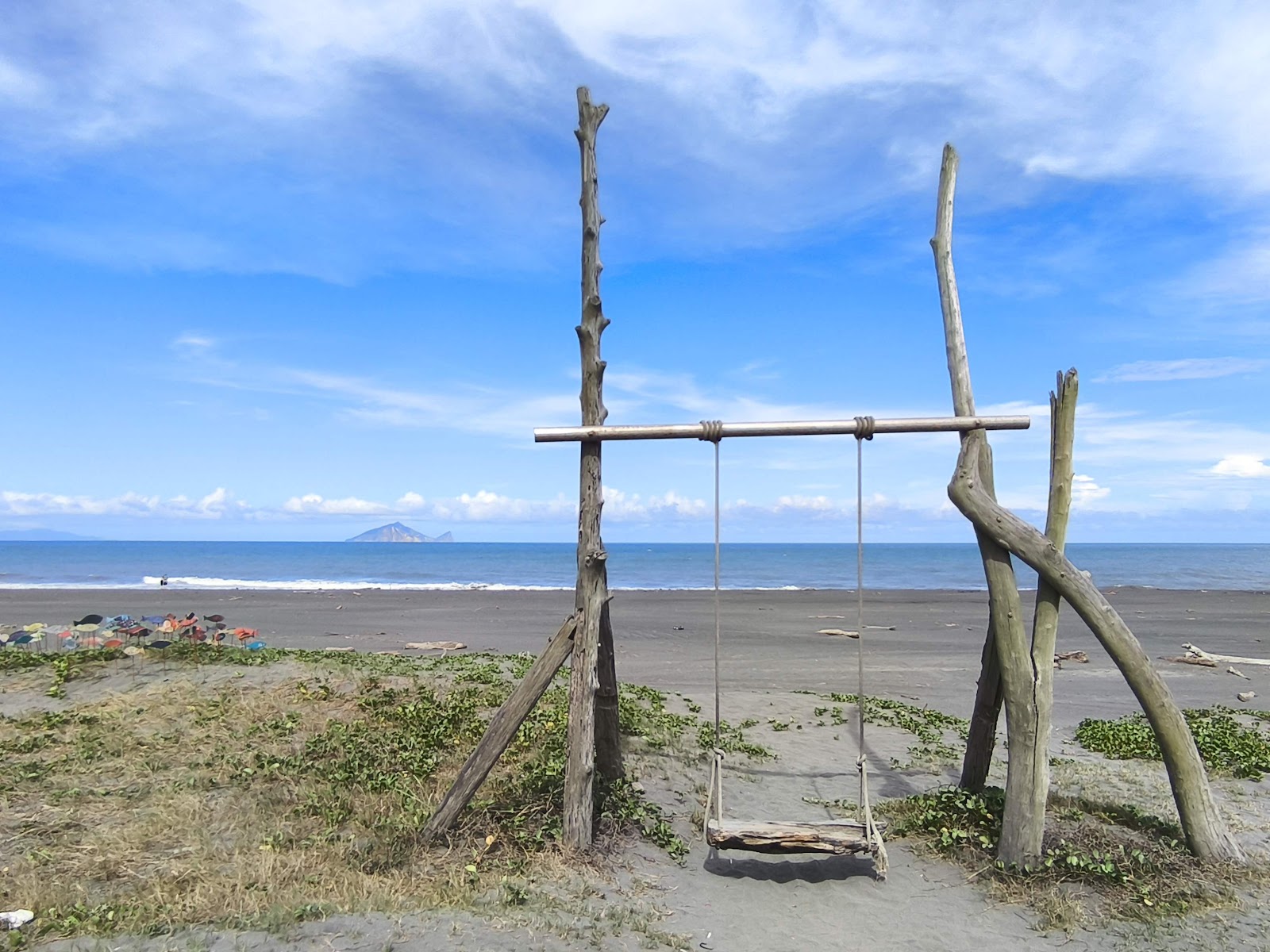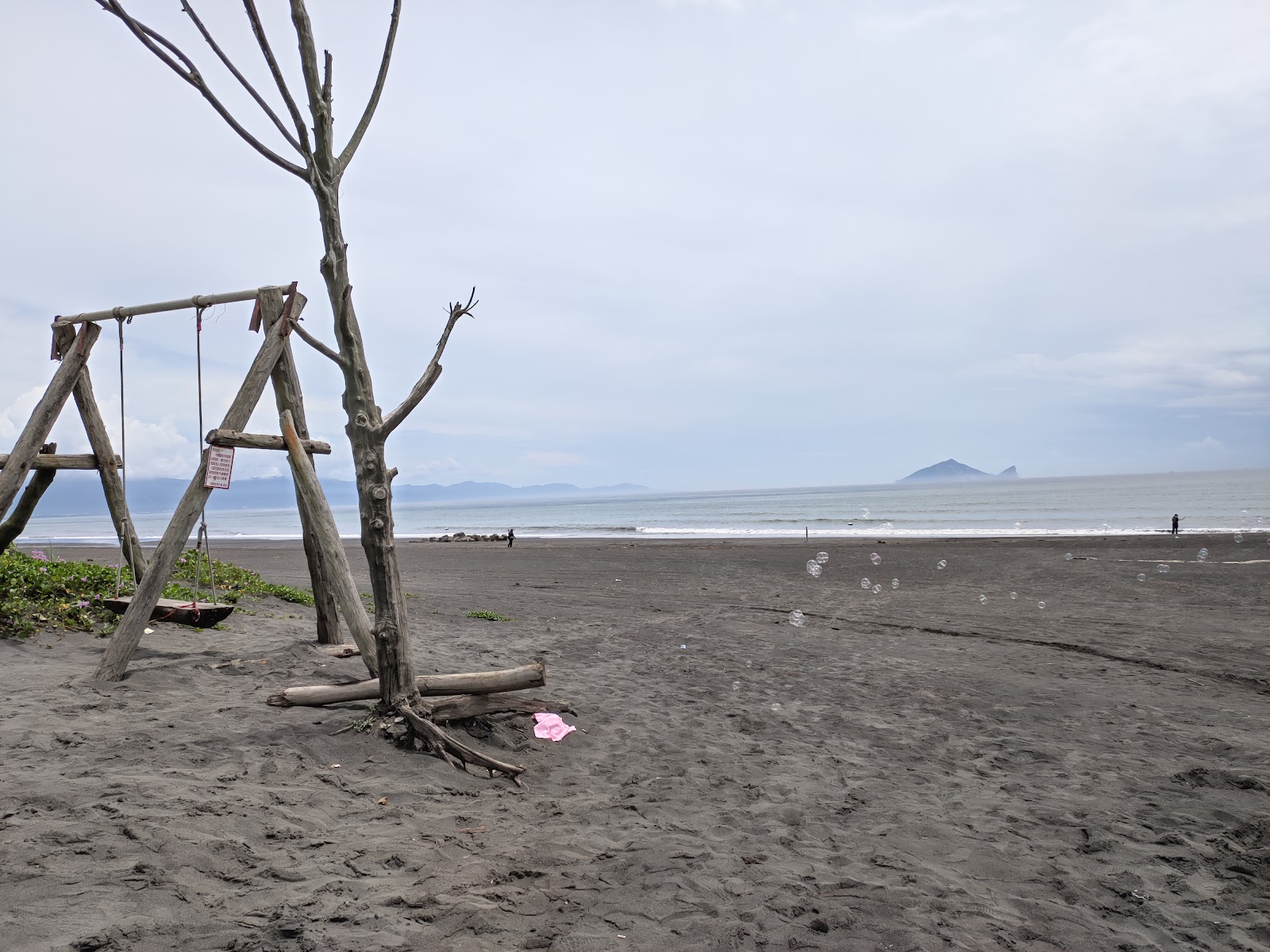 沙灘旁邊有個鞦韆,可以遠望龜山島,就沒有其他設施了。中午前往沒什麼人,不知道是否其他時間會有比較多人去沙灘玩。