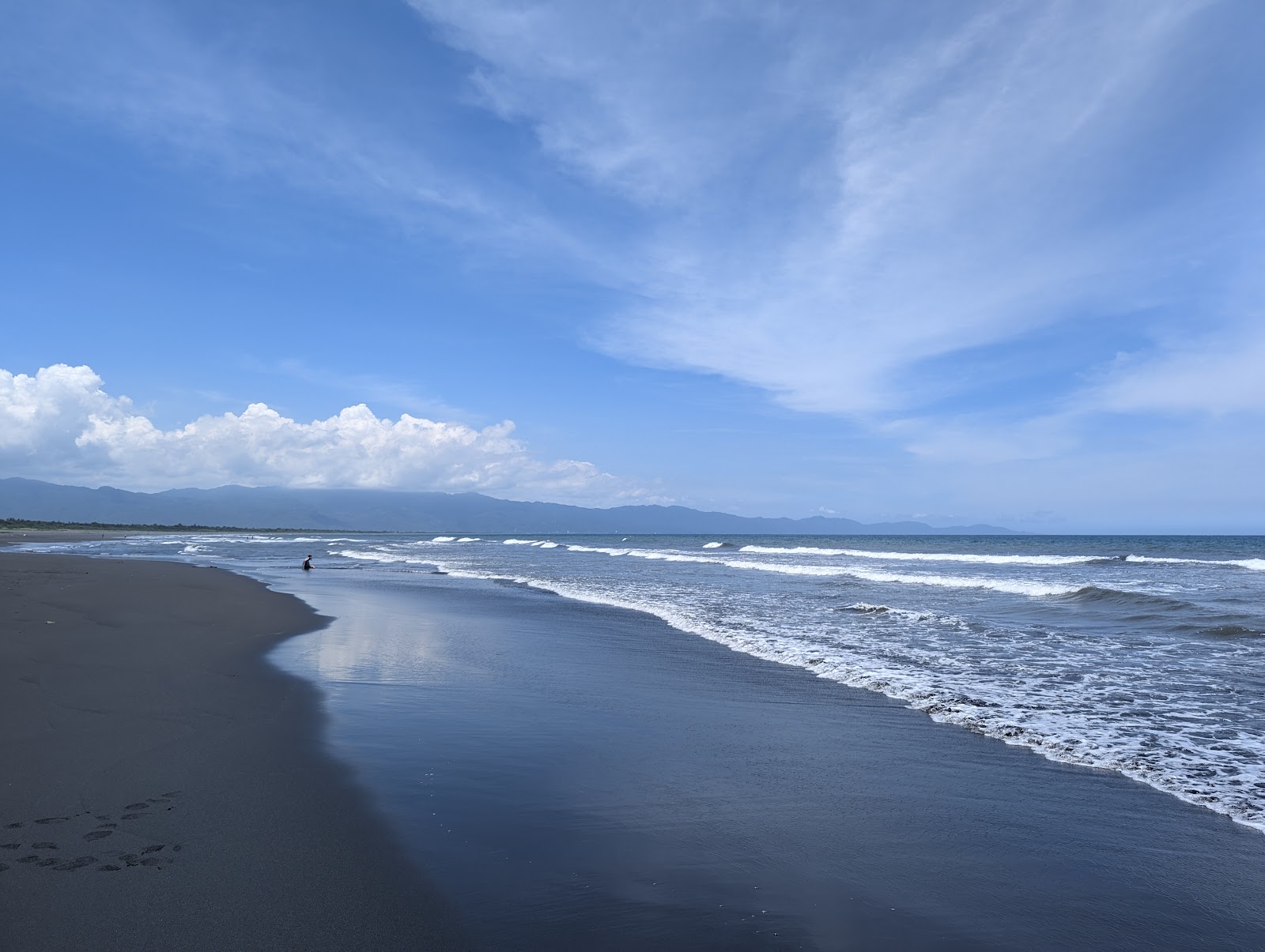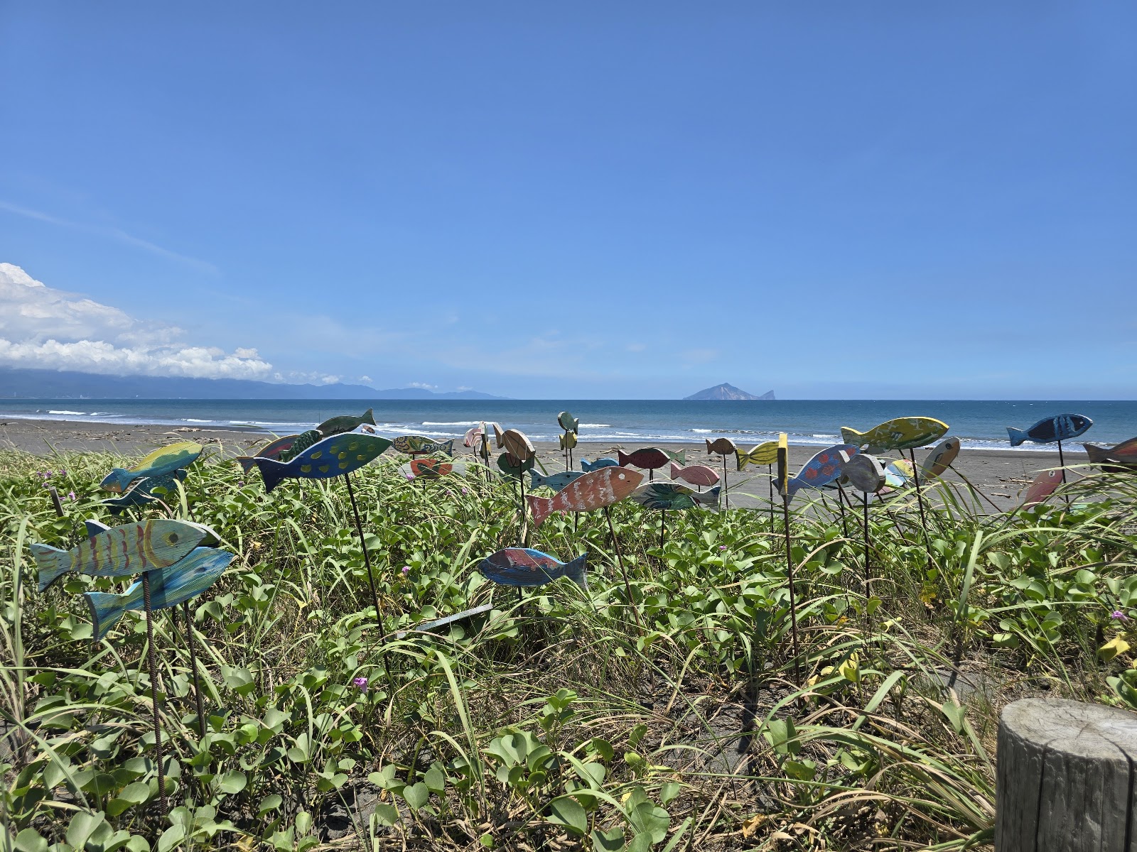 在廣闊沙灘上可以鳥瞰整座龜山島的樣子,在這裡適合放鬆散步看海的地方,如果天氣很好應該會更漂亮。