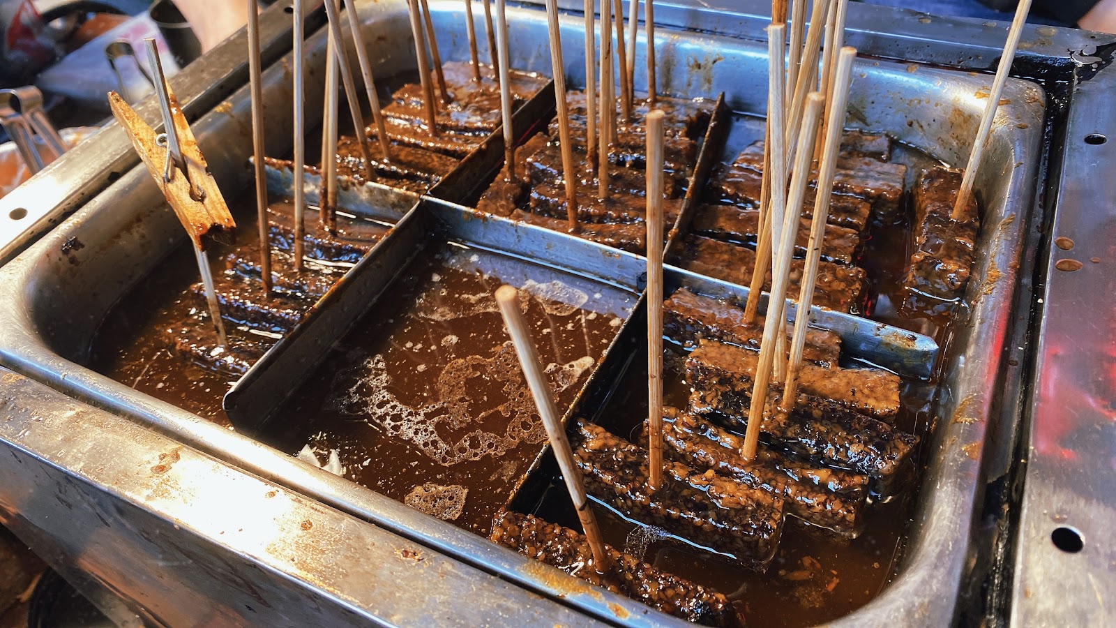 「現滷豬血糕」真的像關東煮一樣在滷汁內一直滷,想必會越魯越香,也越入味~