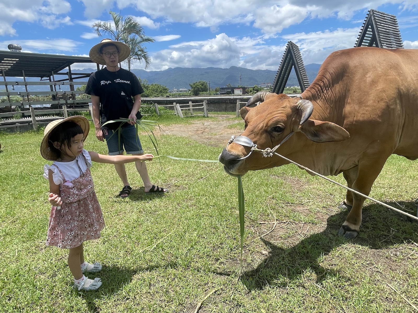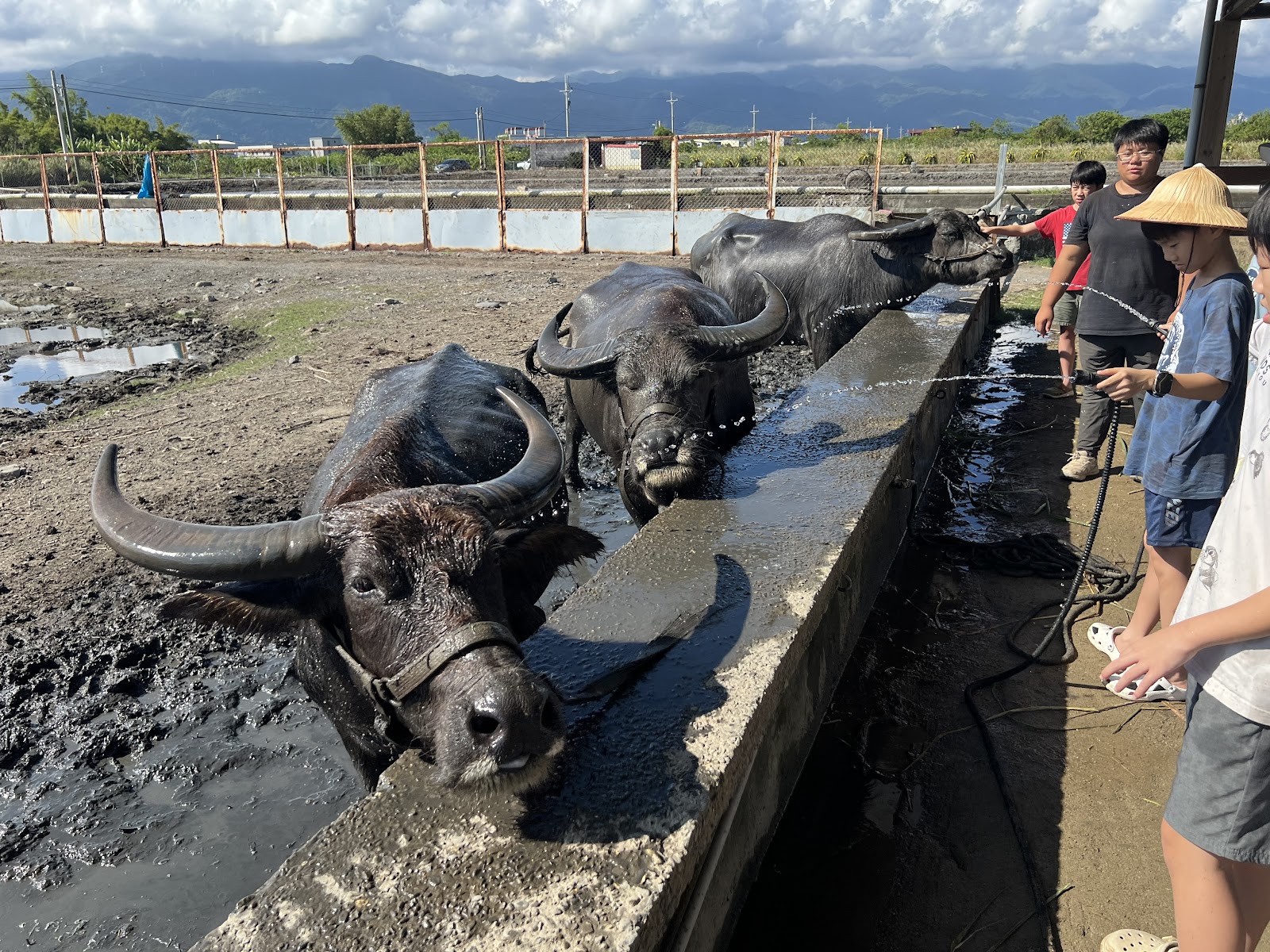 拿到牧草後可以先去餵牛,場地不大但整理得很乾淨。餵草、梳毛和洗澡的過程牛牛們都很乖巧配合,有的牛牛還特別親人,而且雖然我們是在大熱天中午抵達,但工作人員很親切且有耐心地陪同我們,對於我們提出的問題也都很細心地回答,也會告訴我們牛牛們的習性。平時住在都市的孩子們對於能零距離接觸牛、摸牛和幫牛洗澡都開心。