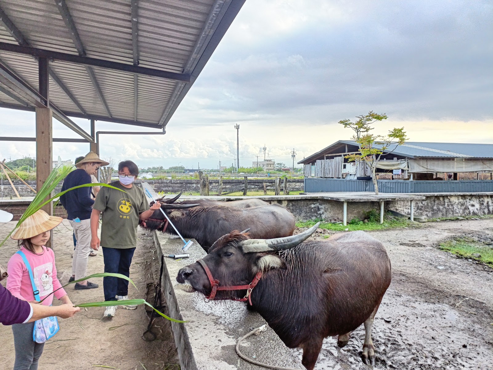 買完門票後,就給一把牧草,然後我們就到水牛區,那邊有個年輕的工作人員熱情的介紹以及教導如何餵食,幫水牛洗澡刷毛,以及介紹水牛及黃牛的差異,還會幫忙拍照,服務態度非常棒。