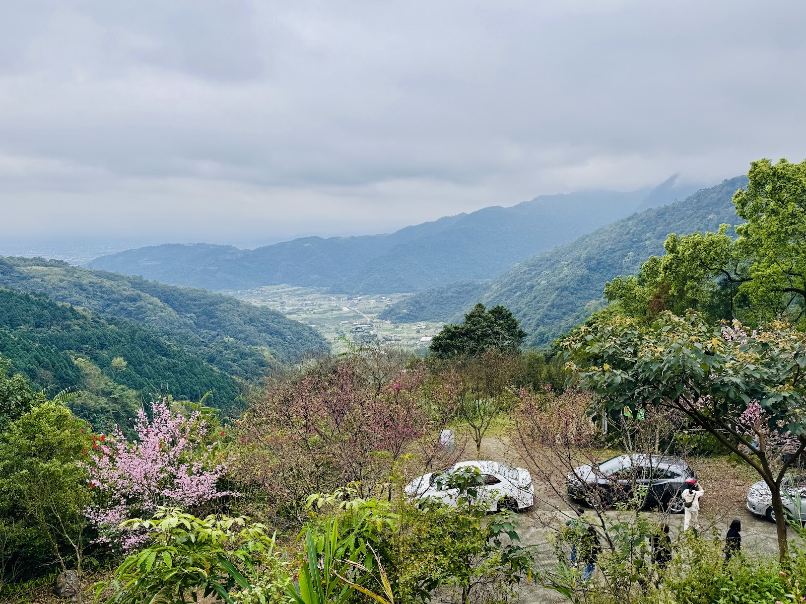 沿路都栽種櫻花,有桃紅色也有粉紅色的,可惜部分含苞中尚未盛開,建議平日前往,空氣較好也不會吸廢氣和塞車,登高處風景漂亮,還有放置椅子供人休息,最高點風大,會比較冷。