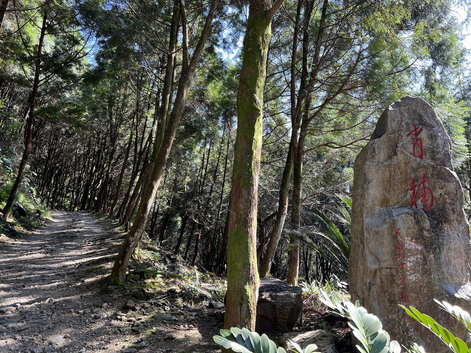 優點:大部份步道都有樹蔭擋著,不太會直接曬太陽,有曝曬到的地方,就會發現山友們自行繞到樹蔭下開一條新路,挺可愛。