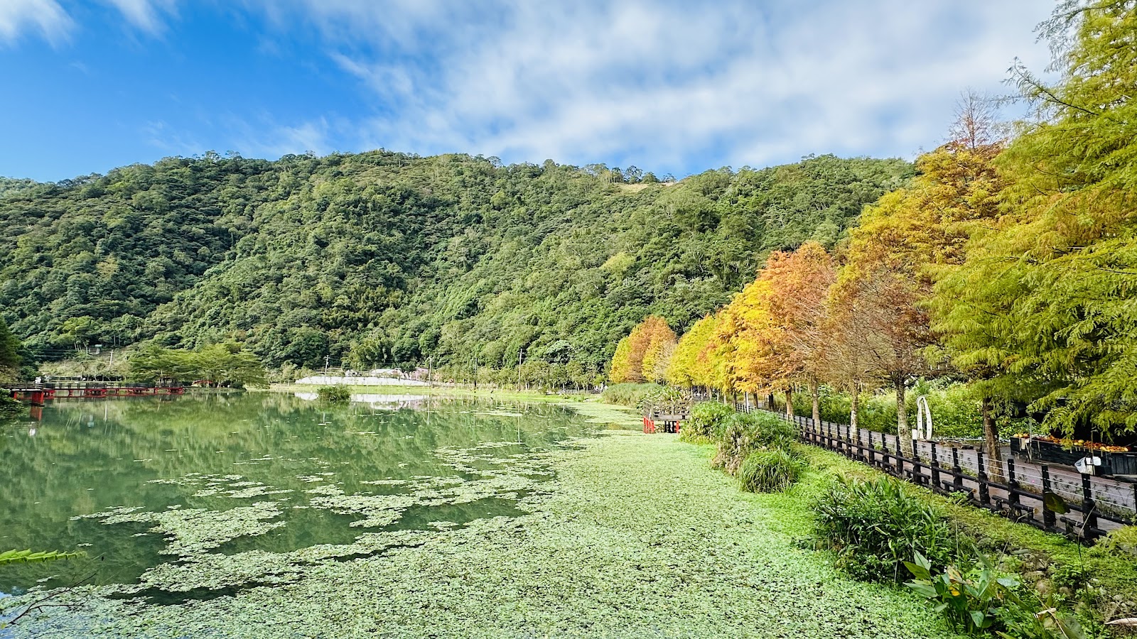宜蘭員山鄉枕山村望龍埤湖落羽松的襯托景色宜人優美,很值得一遊的聖地。