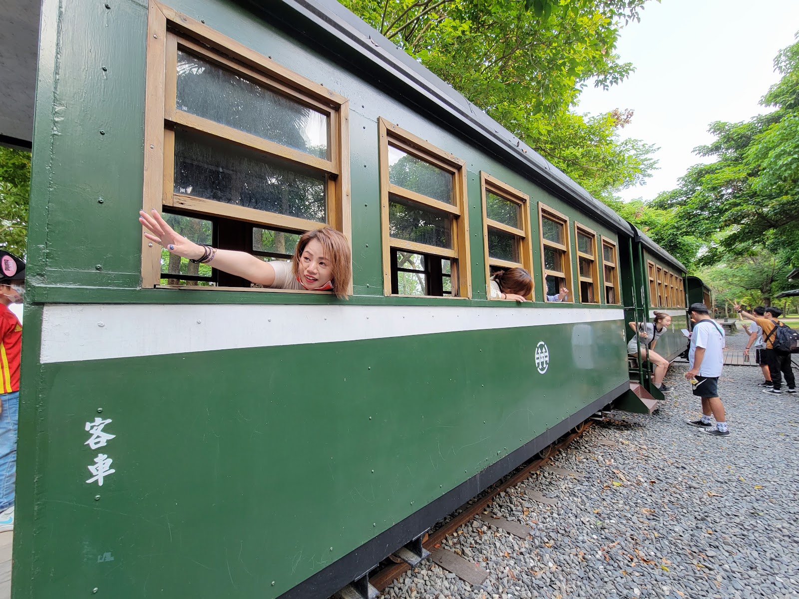 在竹林車站的座位前很適合拍照,有舊火車列車可以上去拍照,還有儲存木頭的池塘,有許多動物鳥類在這邊棲息,很適合繞湖一圈走走!