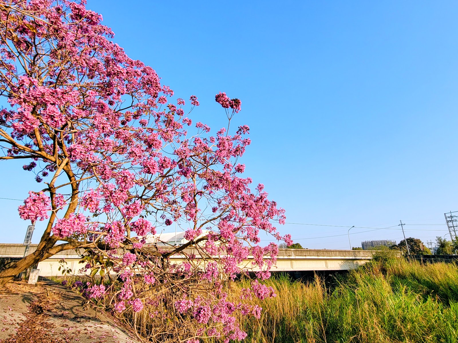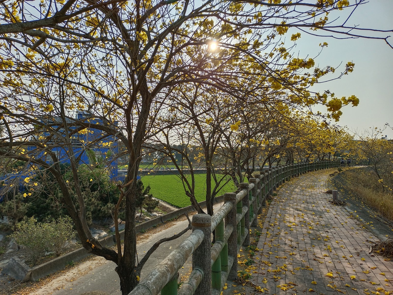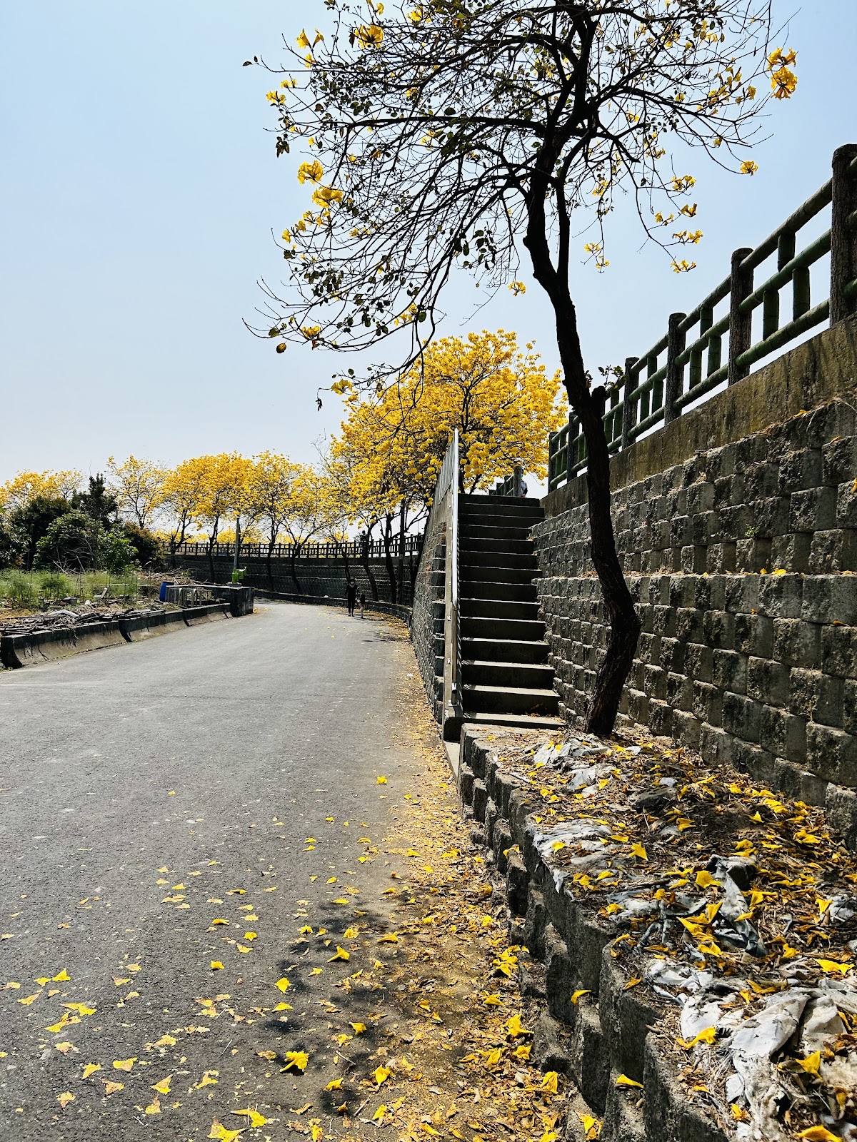 又到了黃金風鈴木盛開的季節,花朵綻放,沿著河堤兩側,是個散步拍照的好去處。