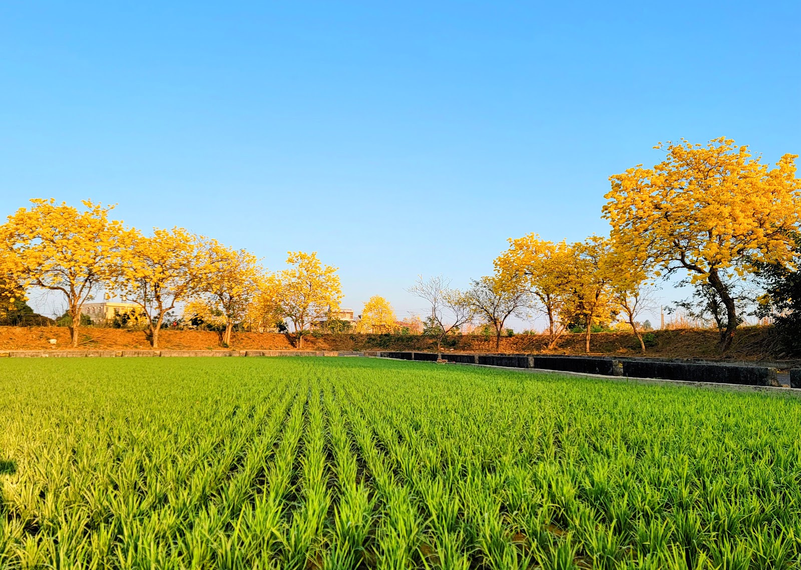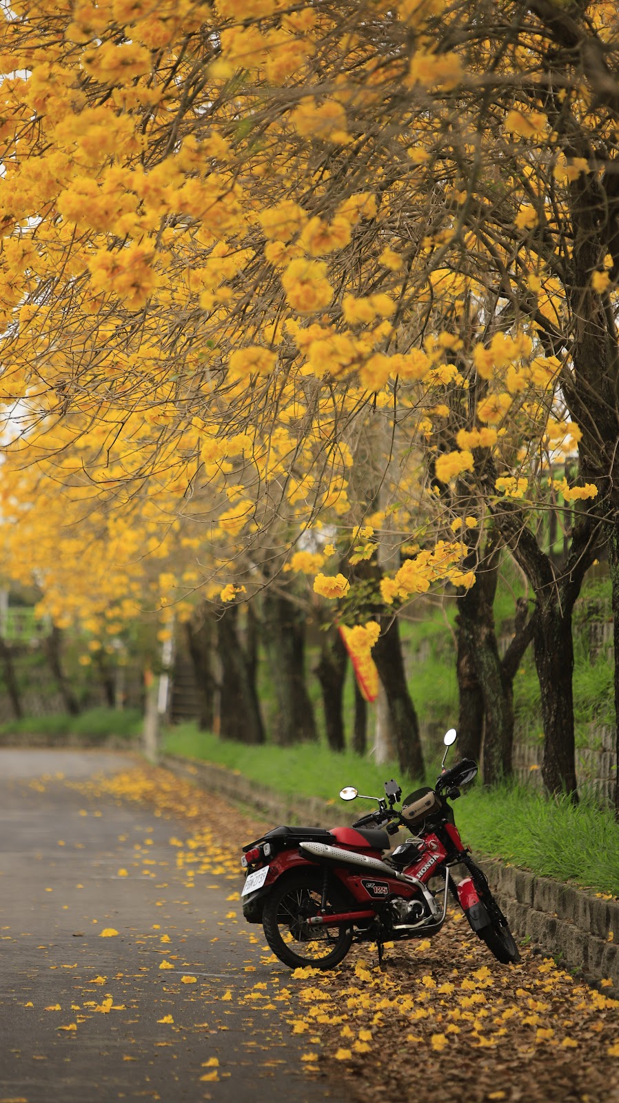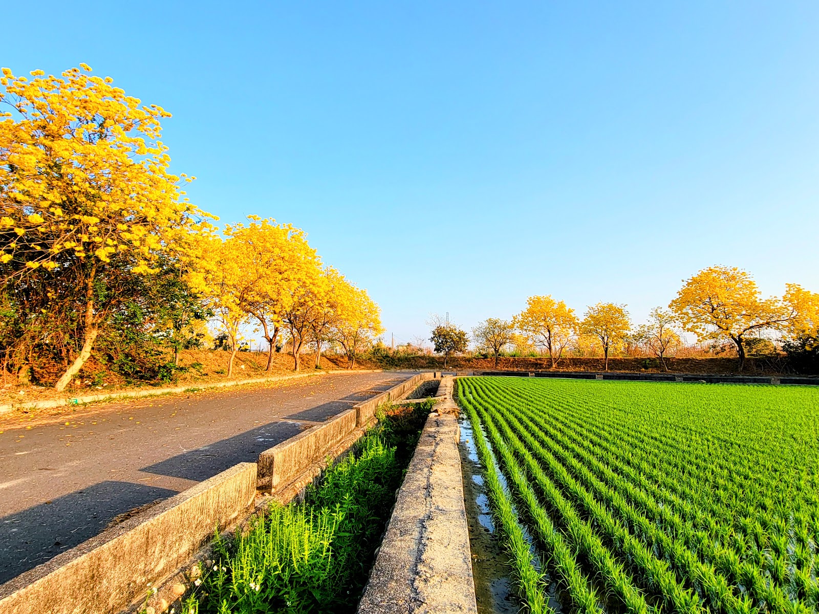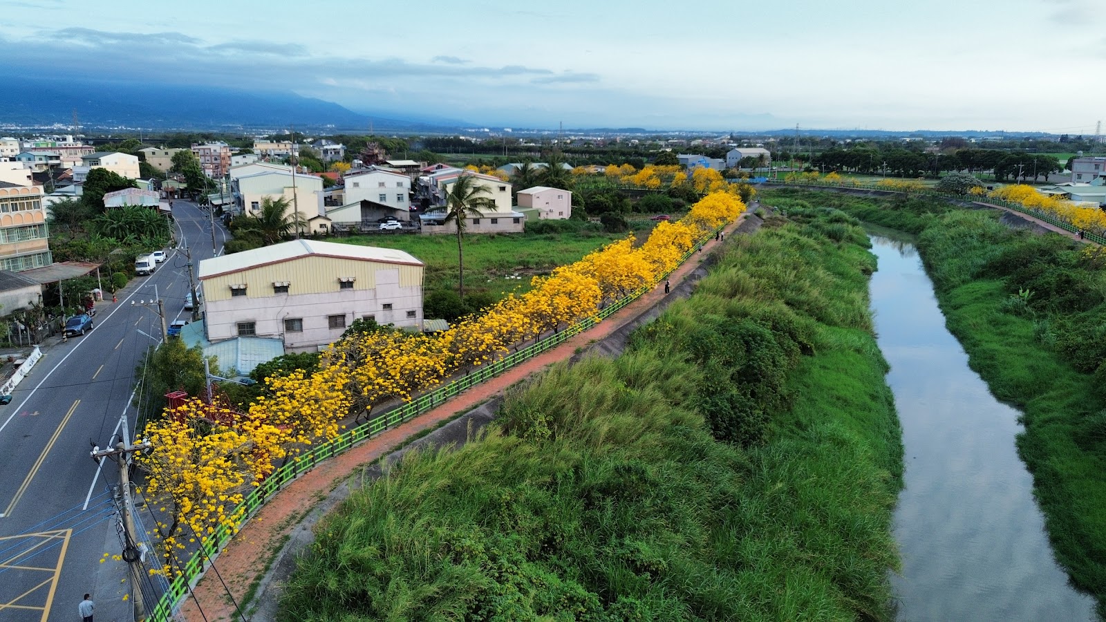 又到了黃金風鈴木盛開的季節,花朵綻放,沿著河堤兩側,是個散步拍照的好去處。
