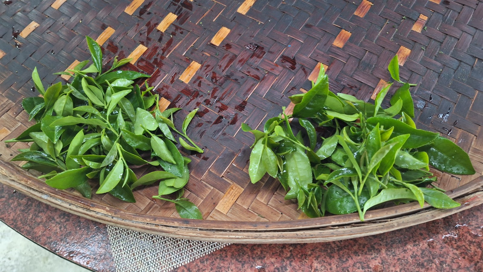 體驗做茶,帶斗笠,腰綁茶壺,很有採茶農的感覺,走下茶園採1心2葉的幼苗,採多少就可以帶回多少喔.採的時間大概15分鐘,採完之後就放入鍋內用手翻炒至葉心一折也不會斷,就代表熟透了.